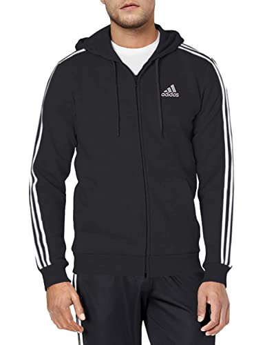 adidas Men's Essentials Fleece 3-Stripes Full-Zip Hoodie, Black, Medium