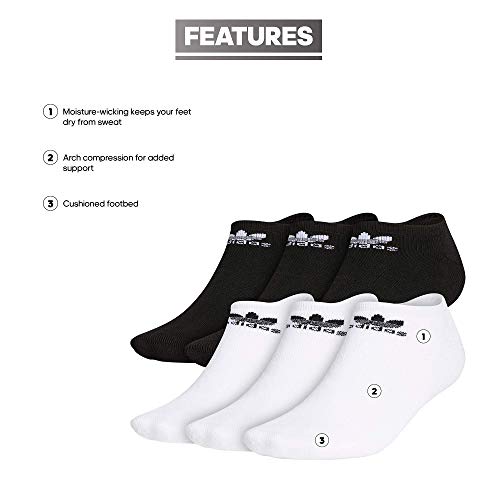 adidas Originals Trefoil No Show Socks (6-Pair), White/Black, Large