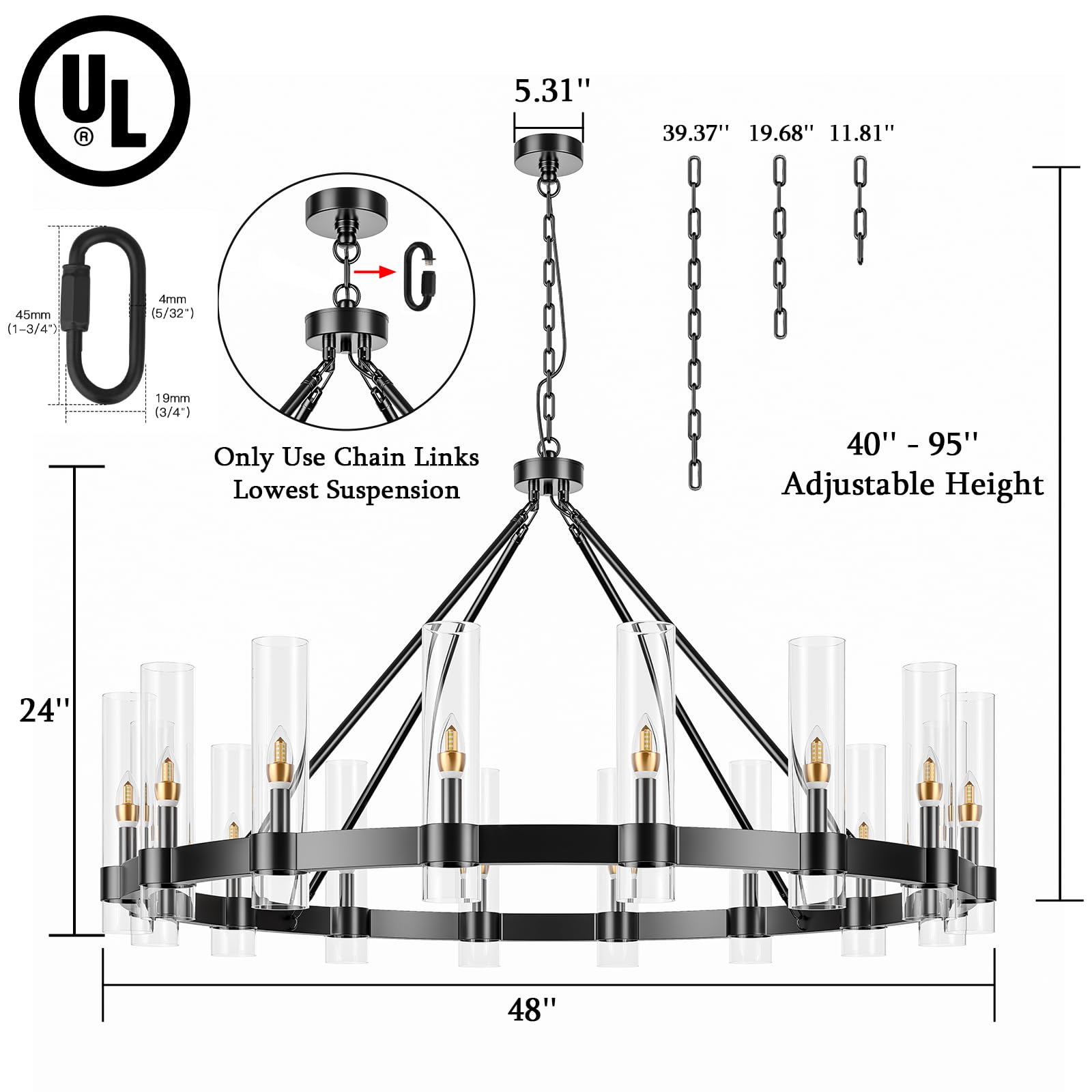 - 【Safety and After-sales Guarantee】AEULYTIR farmhouse chandelier has passed UL certification, met the highest quality standard and safety rating available in lighting. At the same time, we also provide a 3-year warranty service and 100% return and exchange, if you have any questions, please email us and we will help you solve them within 24 hours.