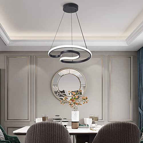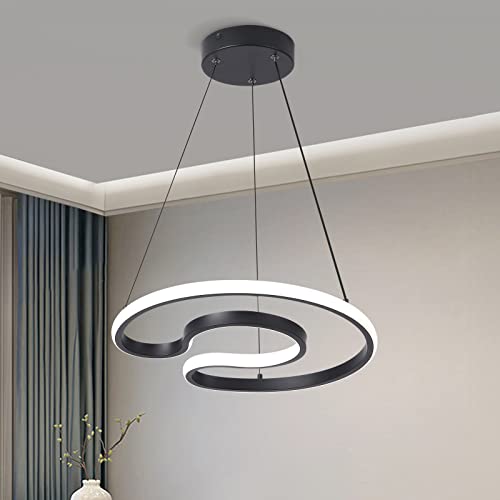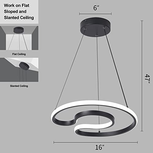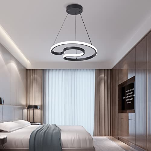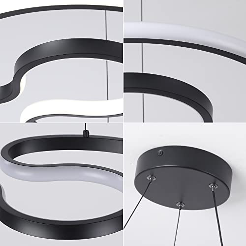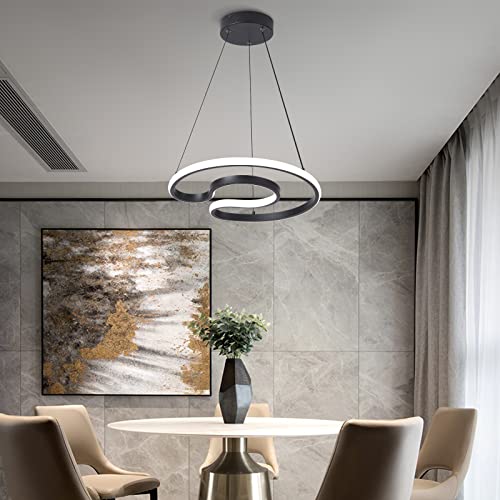 Afaoel Modern LED dimmable Chandelier 45W Color Temperature 3000K-4000K-5000K Creative Design Suitable for Living Room Dining Room Kitchen Island Bedroom Foyer (Black, 16 Inch)