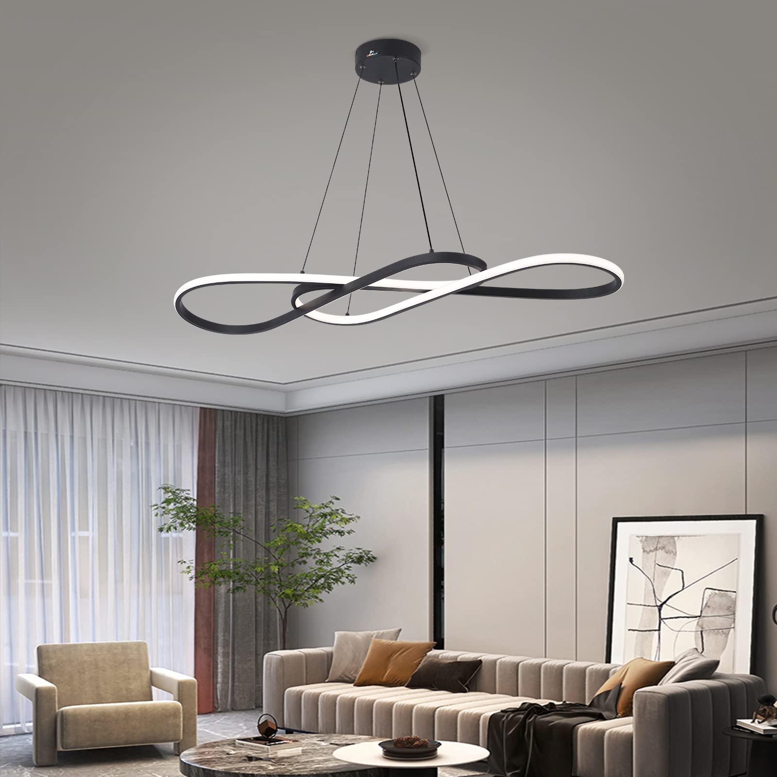 Afaoel Modern LED dimmable Chandelier 45W Color Temperature 3000K-4000K-5000K Creative Design Suitable for Living room Dining room Kitchen Island Bedroom foyer Note The shape (Black, 40 Inch)