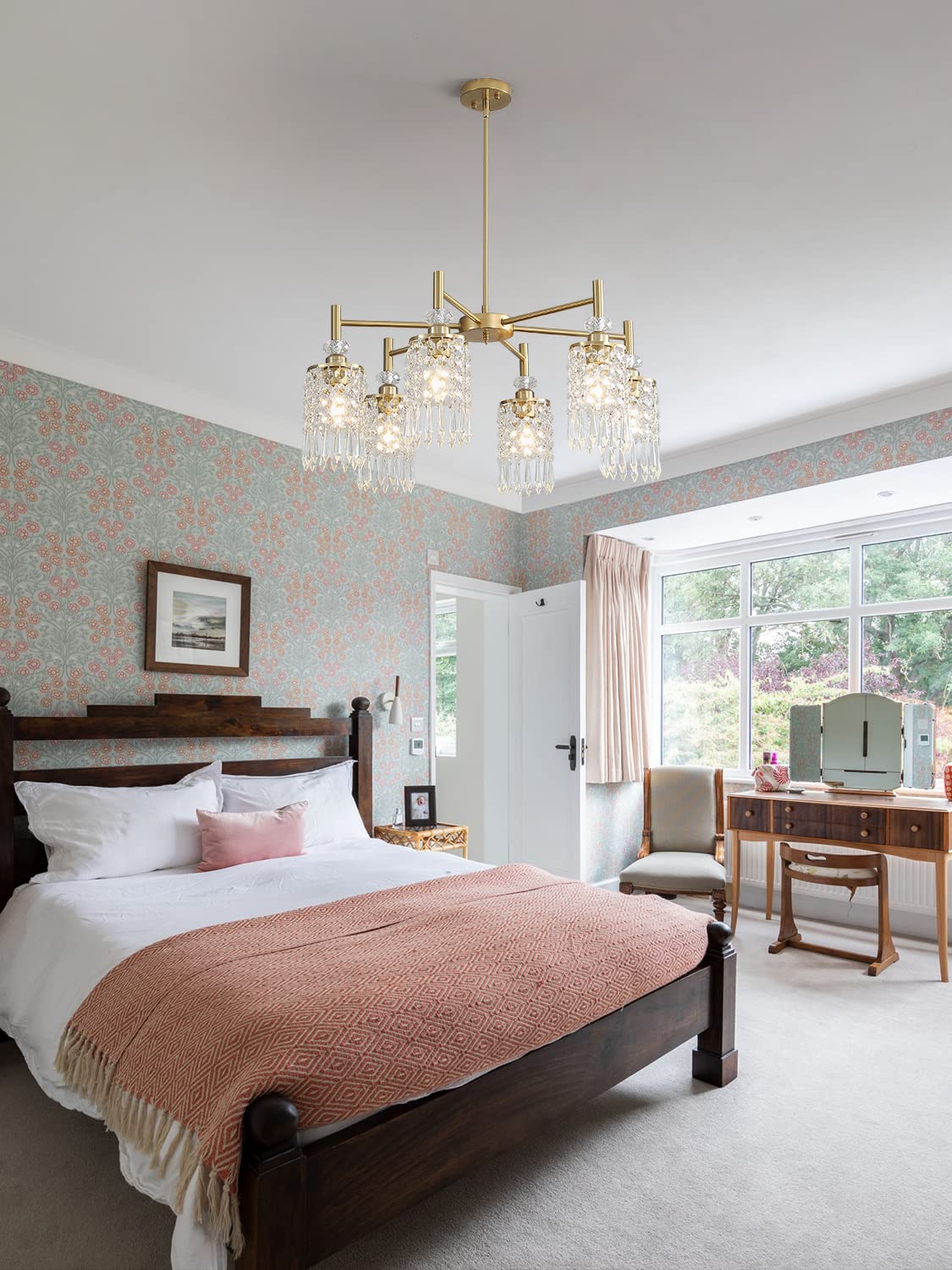 AGEJYYY Crystal Gold Chandelier, 6-Light Modern Ceiling Light Fixtures for Dining, Kitchen, Bedroom & Living Room, Over Table Lighting, Industrial Modern Entryway Chandeliers Design,30in, E26