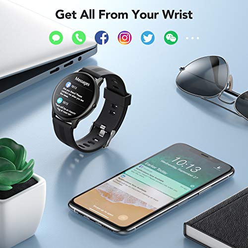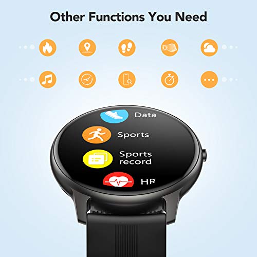 • 【Your Watch, Your Style】1.3"/33mm touch screen covered with a metal frame, sturdy and anti-scratch. The smart watch contains 5 dials readily available to choose from along with another 30 more dials within the app. You can also customize your watch faces. It can be any photo, such as your family, pet ,etc. NOTE: When there is a software update prompt on the APP, it is recommended to upgrade to the latest software version for a better experience!