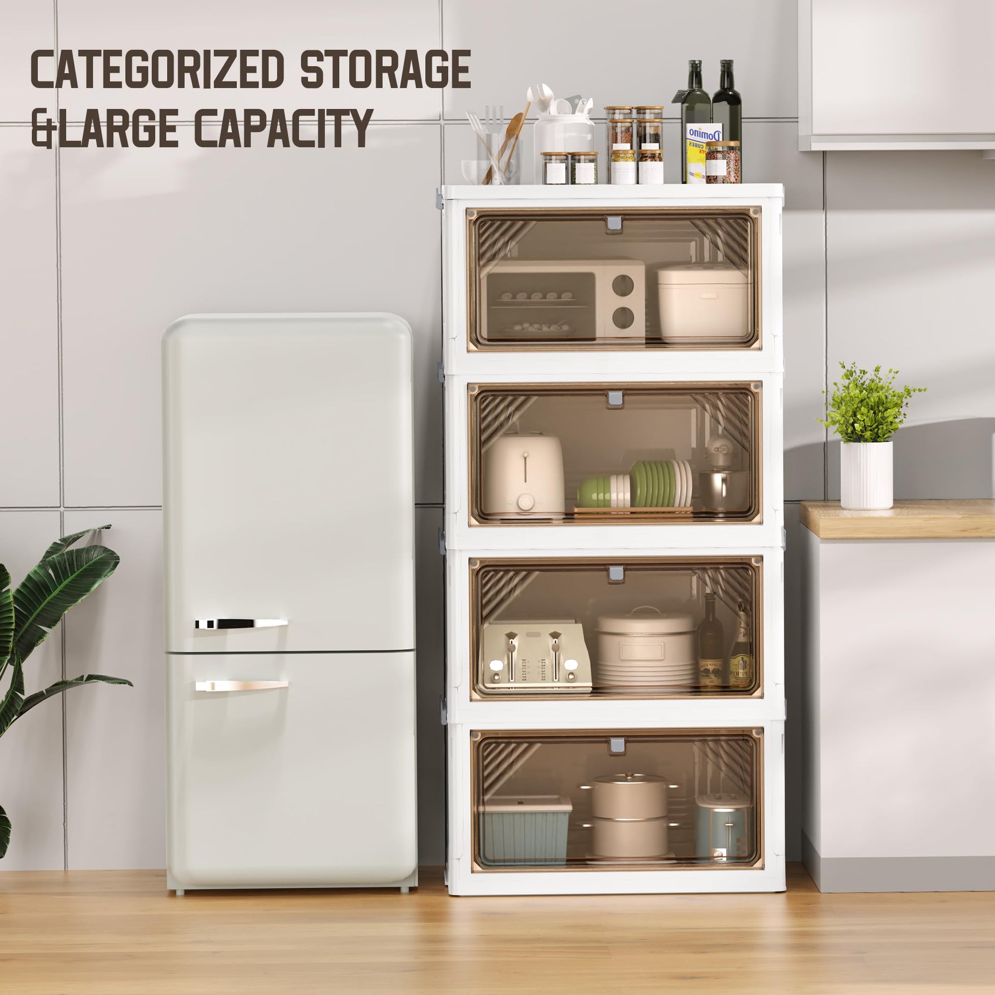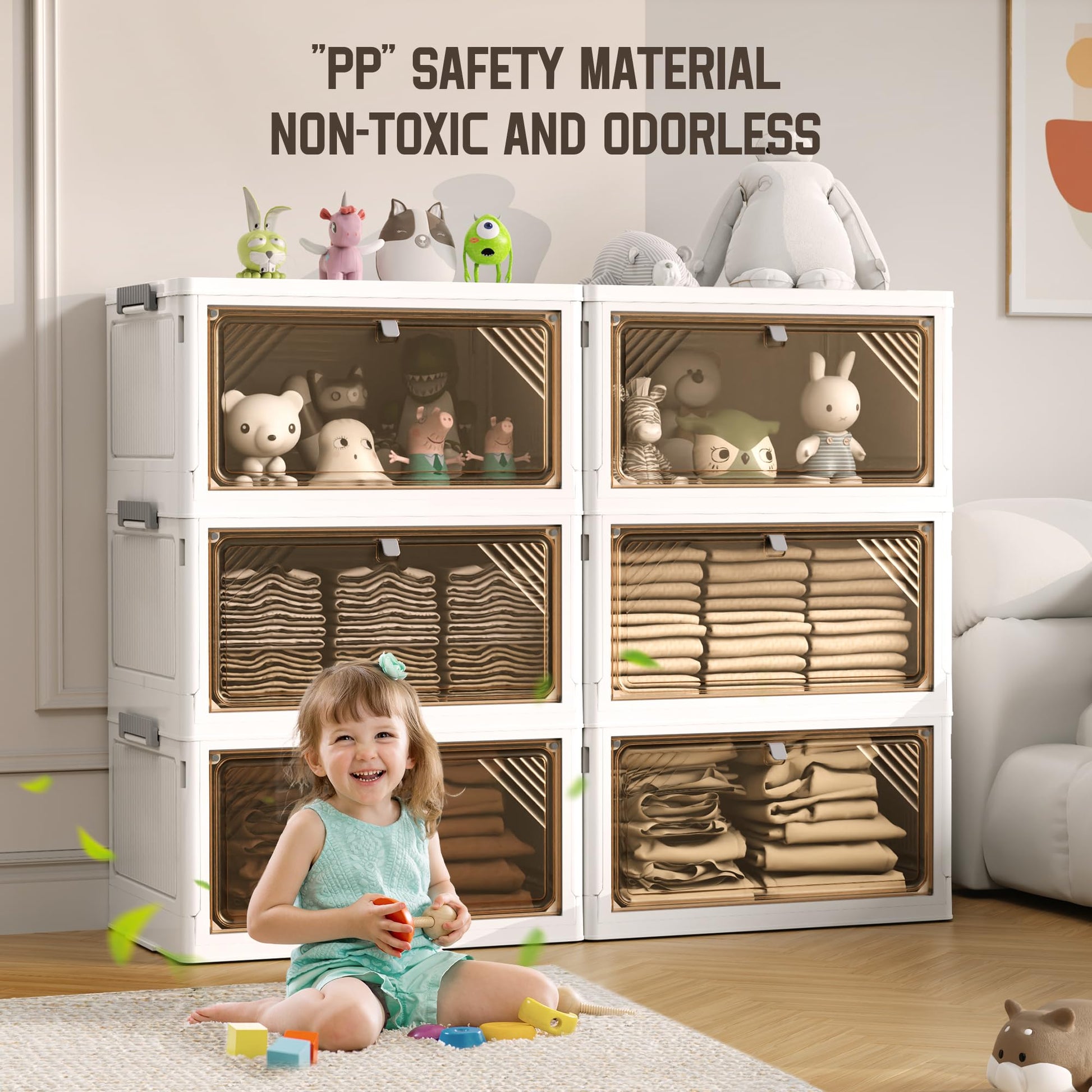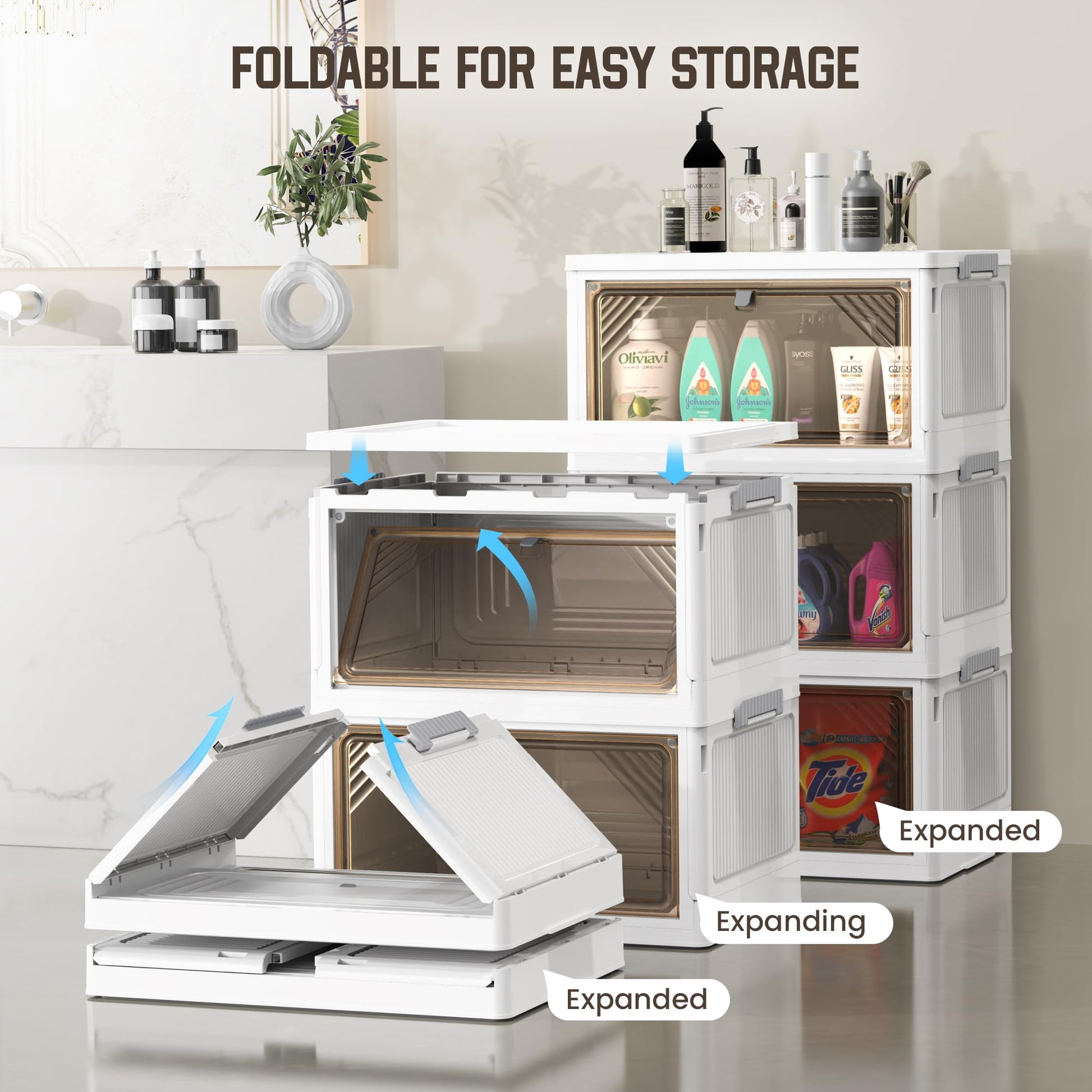 - Visual Design: Since our plastic storage bins uses a transparent front side panel, you can easily and quickly identify the items stored inside. The top stackable storage bins has two opening methods, the top lid or the front side panel, and the lower storage box opens and closes from the front side panel.