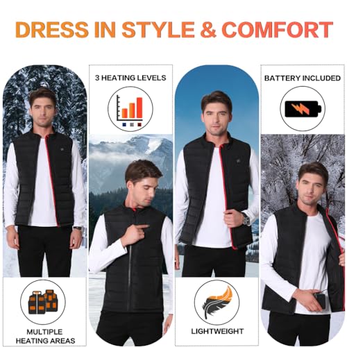 - 【For Many Occasions】Improved to more warmer and not easy to wrinkle. The heating vest heats up in seconds after turning on, great for men/women to enjoy most outdoor activities, such as fishing, riding, camping, hunting, motorcycling, skiing, golfing, or just as daily office wear.