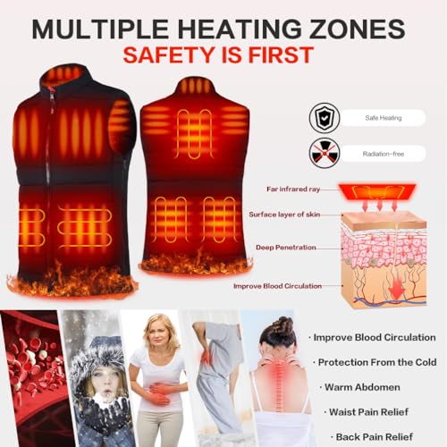 - 【Comfortable & Adjustable】Our lightweight heated vests allow you to wear it under your jacket in cold weather. 5 sizes are available and humanized sides zippers design to let it suit for more body shapes. If you'd like to choose the slim style of "women", please purchase 2 sizes larger. To zip up the sides zipper can help reduce the waistline.