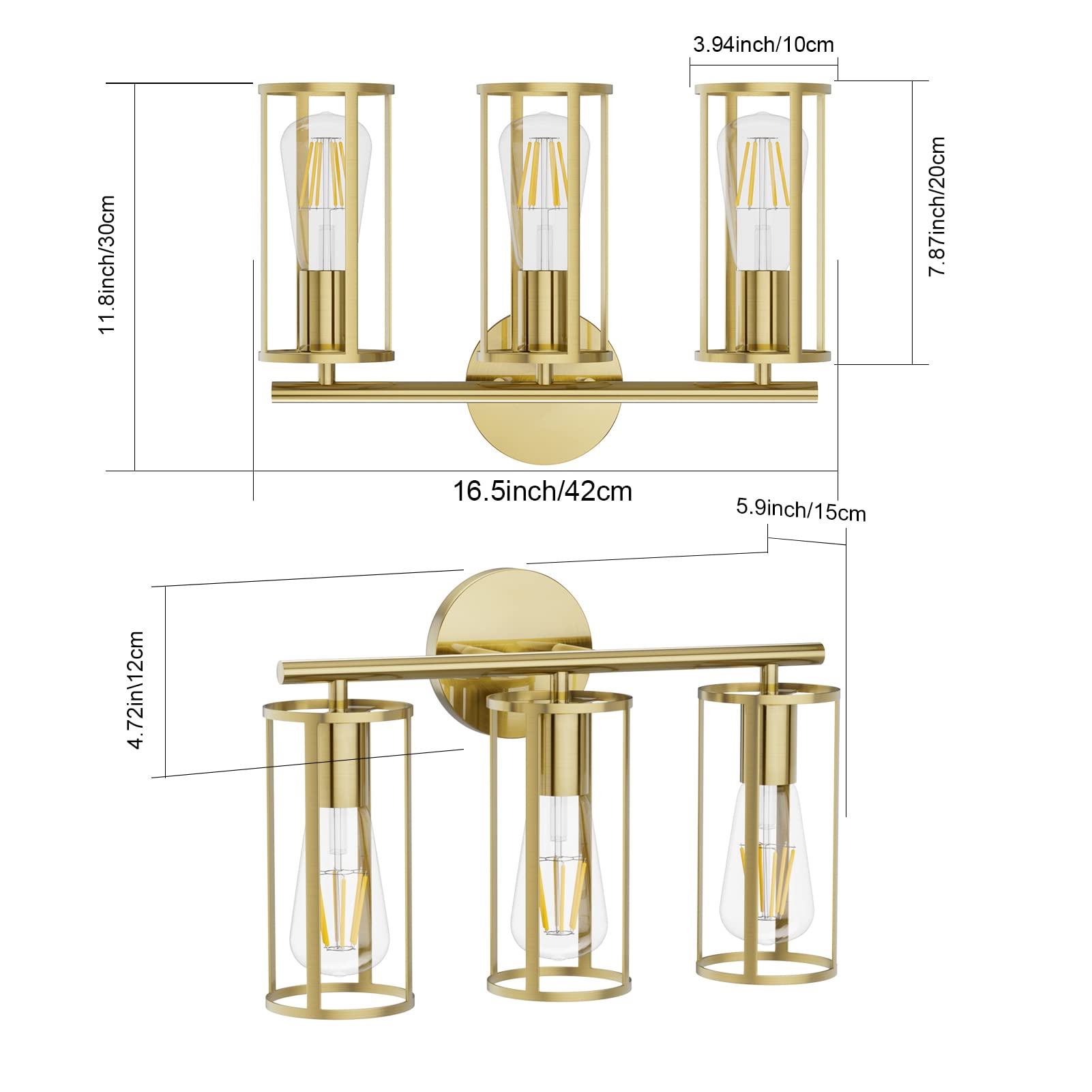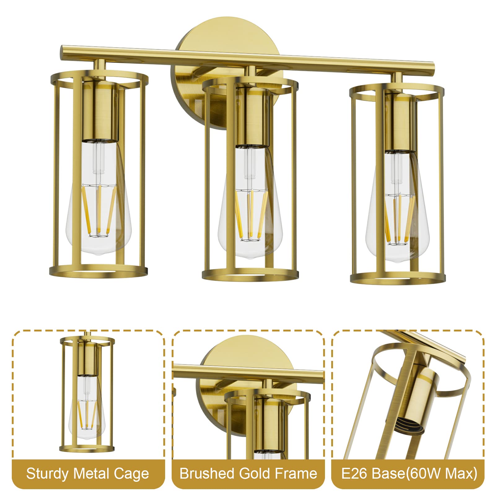 Gold 3-Light Farmhouse Bathroom Wall Fixture