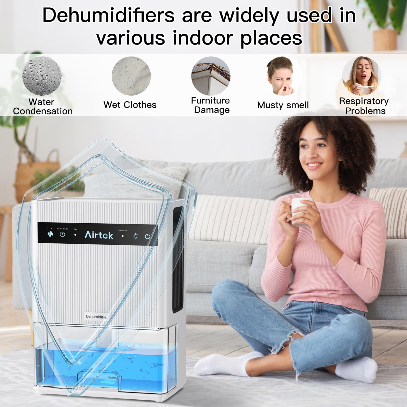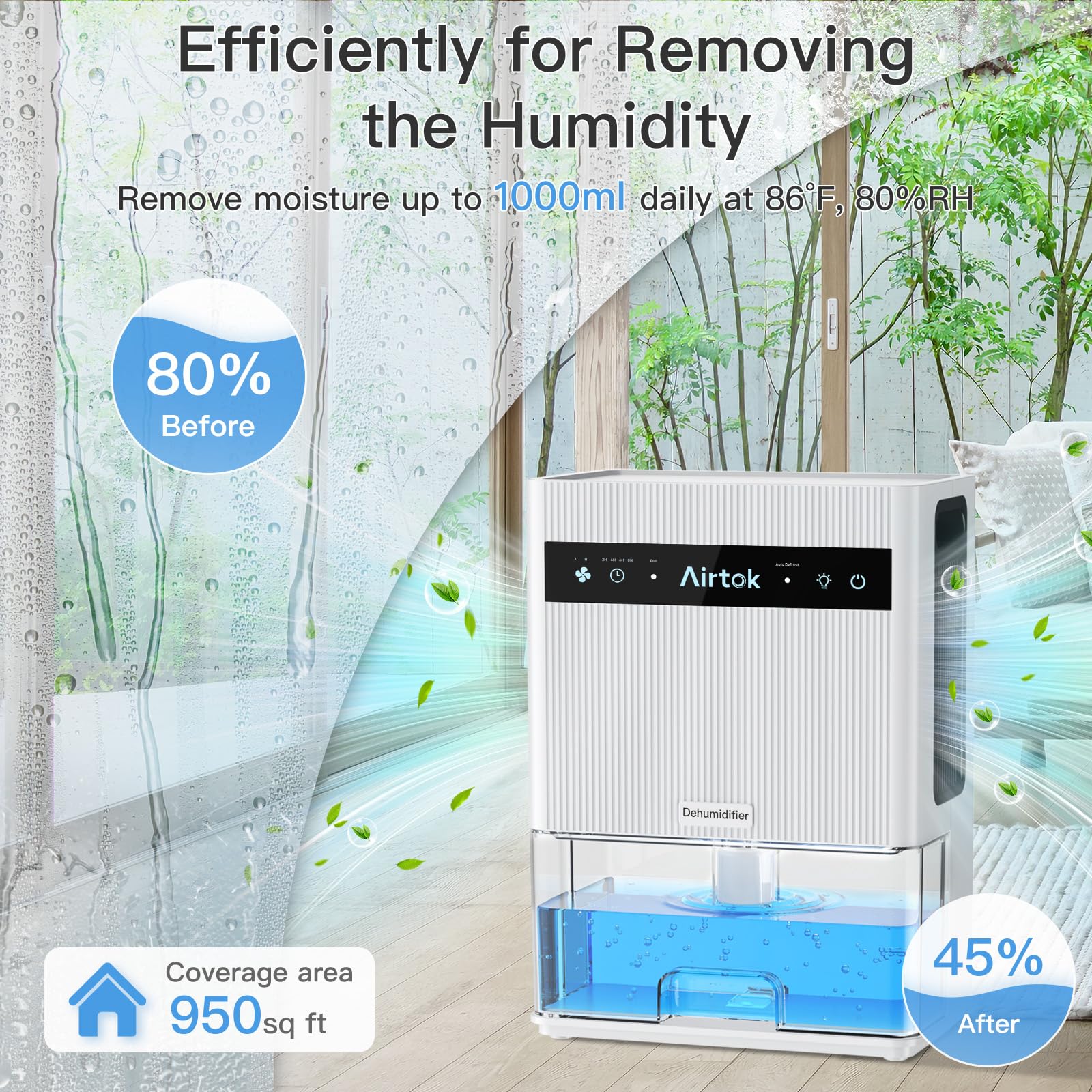 Airtok Dehumidifier for Home, Up to 950 Sq.Ft, 105.6 OZ Water Tank, Quiet Dehumidifier for Bedroom with Auto-Defrost, 4 Timer, Auto Shut Off, 7 Colors LED Light, for Bathroom Basement Closet RV