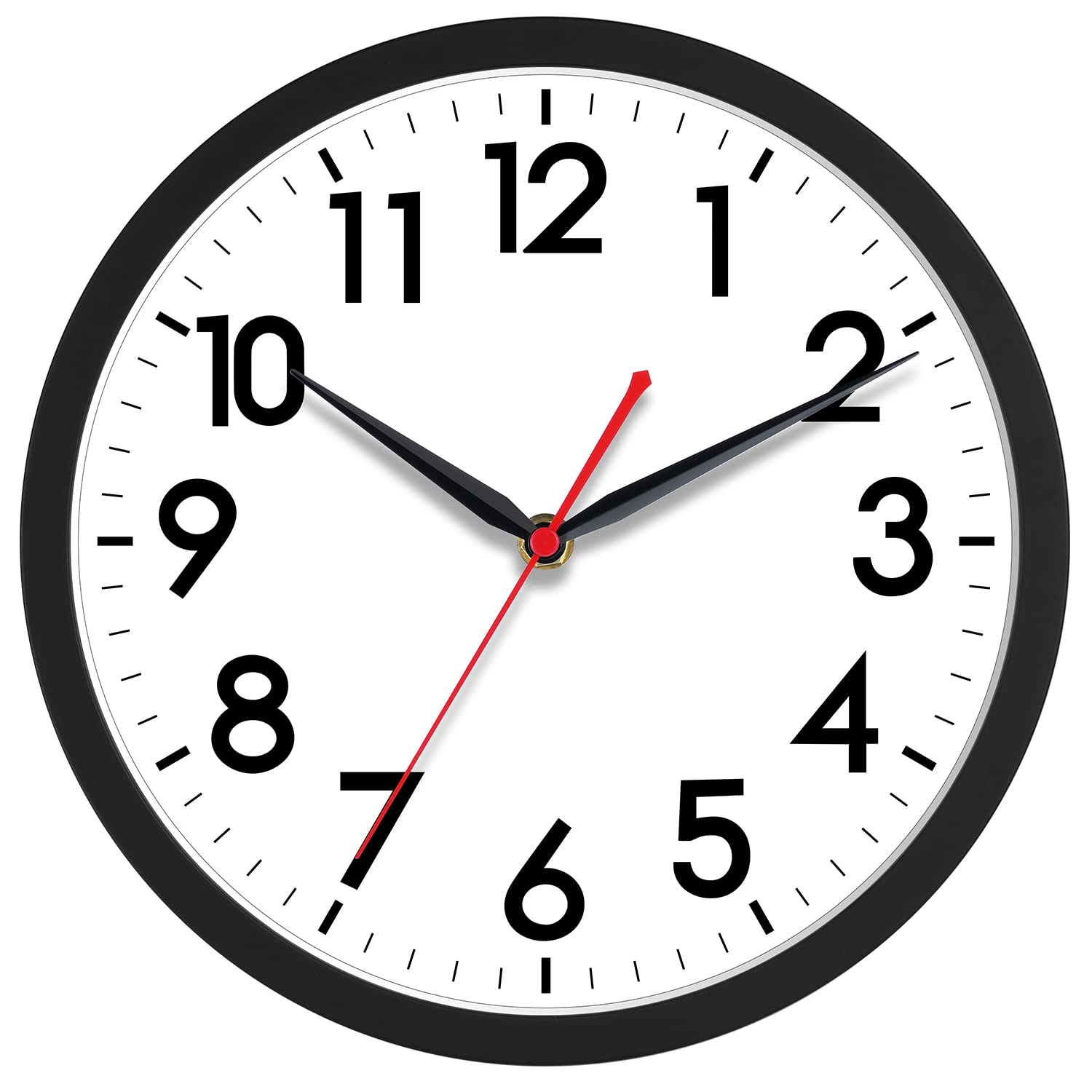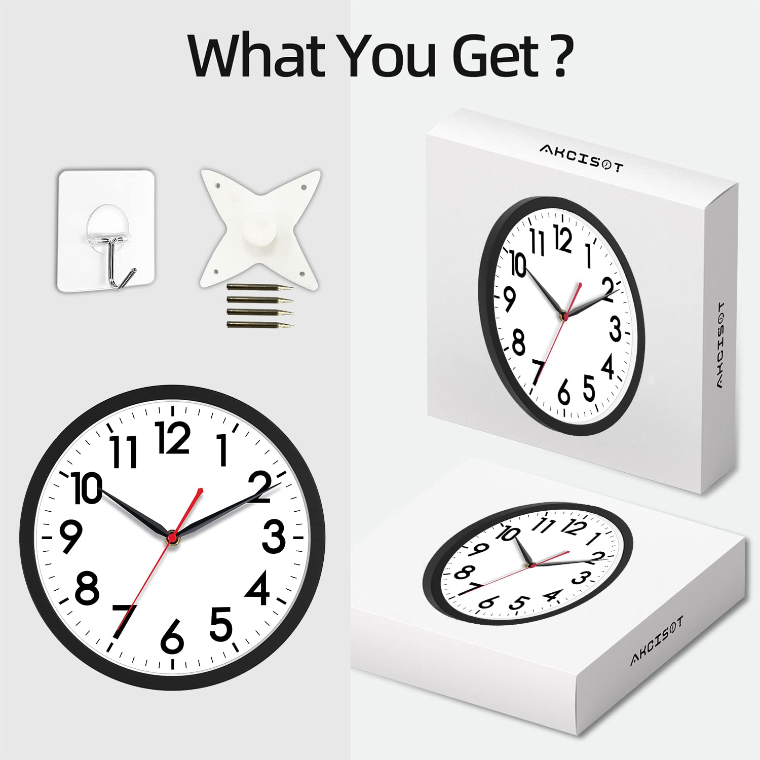 AKCISOT Wall Clock 10 Inch Silent Non-Ticking Modern Clocks Battery Operated - Analog Small Classic for Office, Home, Bathroom, Kitchen, Bedroom, School, Living Room(Black)