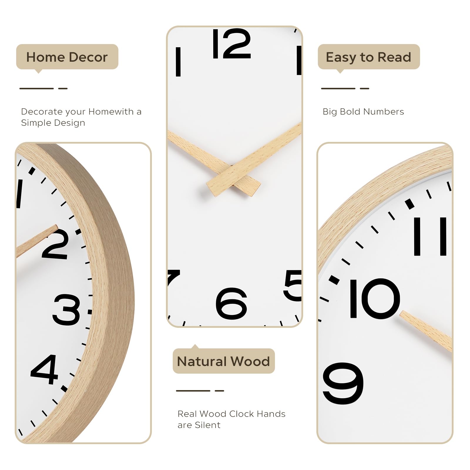 AKCISOT Wall Clock,Boho Kitchen 10 Inch Wall Clocks Battery Operated Non Ticking,Silent Modern Clock Decorative for Bedroom,Office,Bathroom,Living Room,Home (Wood Grain)