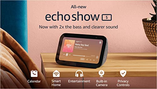 All-new Echo Show 5 (3rd Gen, 2023 release) | Smart display with 2x the bass and clearer sound | Charcoal