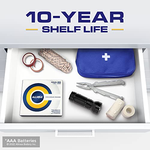 - ★ 10-Year Shelf Life – Allmax AAA batteries are always fresh and maintain power for up to 10 years in proper storage. This makes Allmax batteries the perfect choice for long-term storage and emergency preparedness kits.
