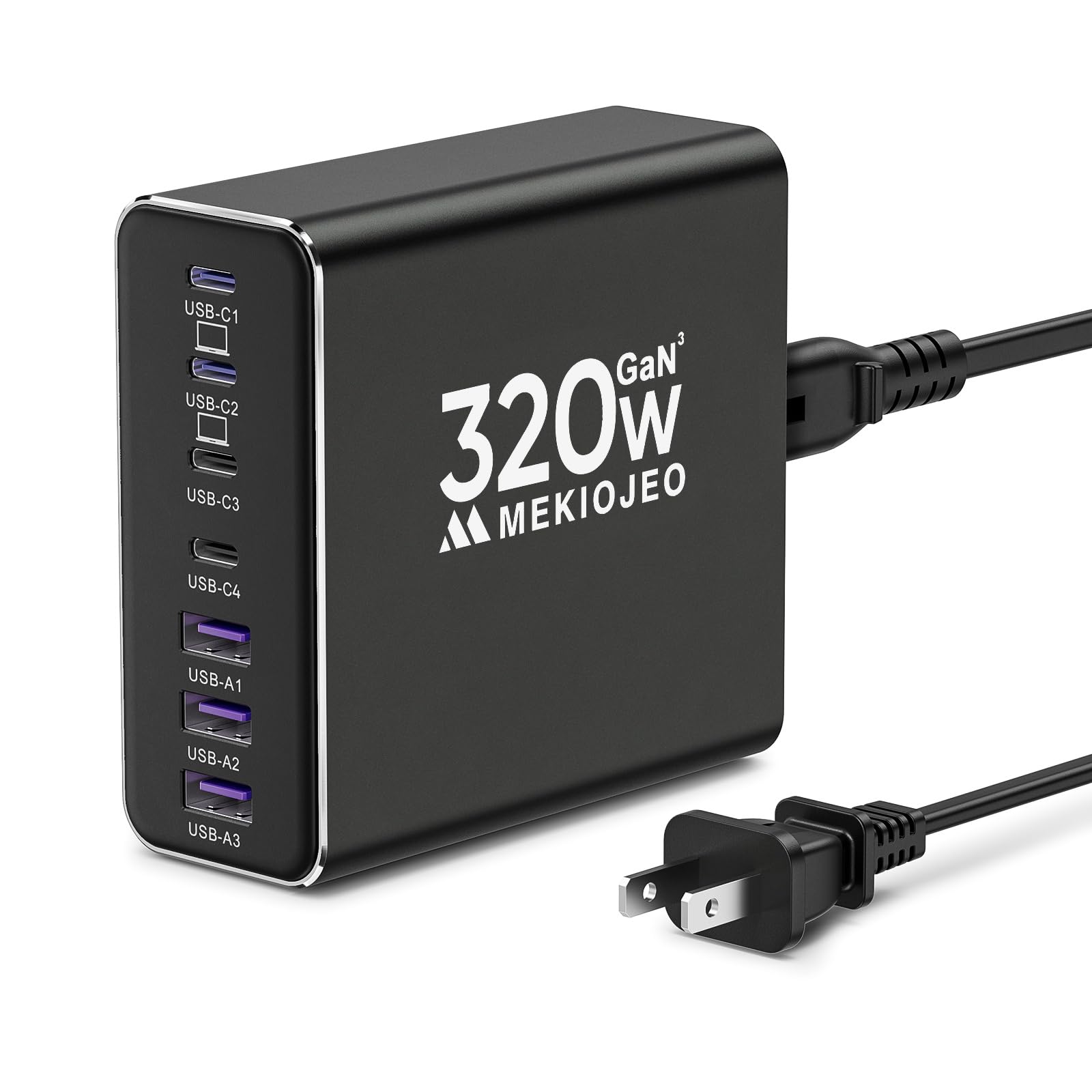 - 7-in-1 USB C Charger: This usb c charger block provides 7 charging wattage options with 4 USB-C ports and 3 USB-A ports. Such a usb c multiport charger can handle all your devices at fast speed with a total output up to 320W. What's cool is that you can charge two laptops with our top two usb c ports of 65w