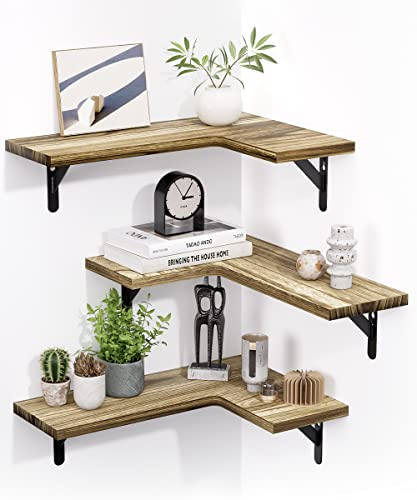 AMADA HOMEFURNISHING Corner Shelves Wall Mounted Set of 3, Rustic Wood Wall Shelves for Bedroom/Bathroom/Living Room/Kitchen/Laundry Room, Floating Shelves for Wall Storage & Decoration, AMFS22