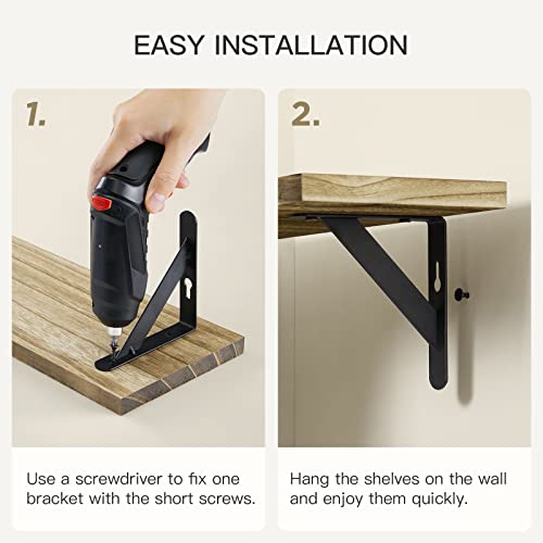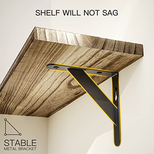- Solid Wood & Metal Bracket: The wall shelf is made of high-quality paulownia wood and reinforced steel brackets. The Paulownia wood is lightweight but strong and the metal triangle brackets enhance stability to hold up to 44 lbs per shelf.
