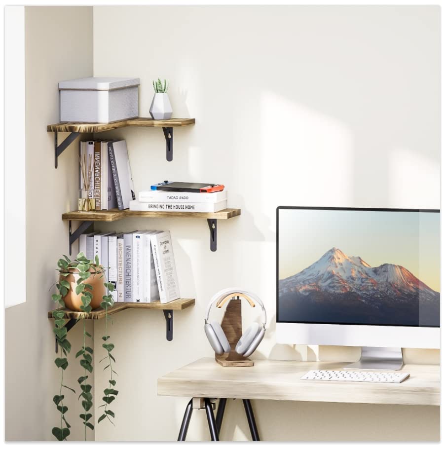 - Functional and Decorative: Corner shelves and floating shelves are a great way to organize your space while adding character and color. Use the corner to store toiletries in the bathroom, collectibles in your office space, or spices and jars in the kitchen.