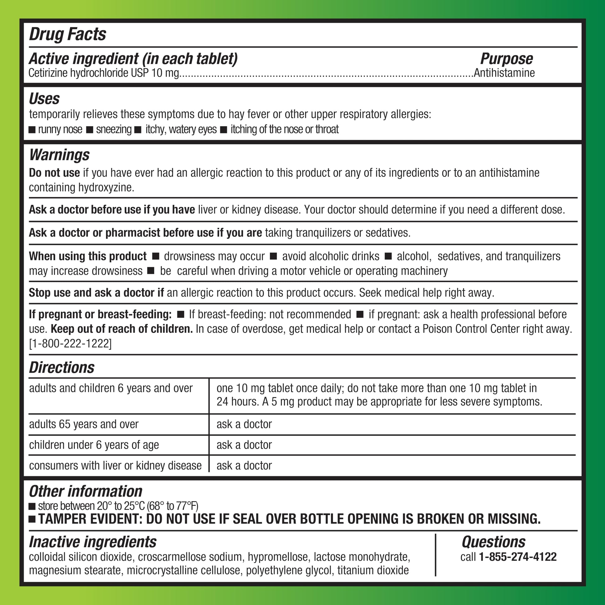 - EFFECTIVE: Amazon Basic Care All Day Allergy, Cetirizine Hydrochloride Tablets, 10 mg are original prescription strength and gluten free These allergy pills are an antihistamine approved for the treatment of both indoor and outdoor allergy symptoms