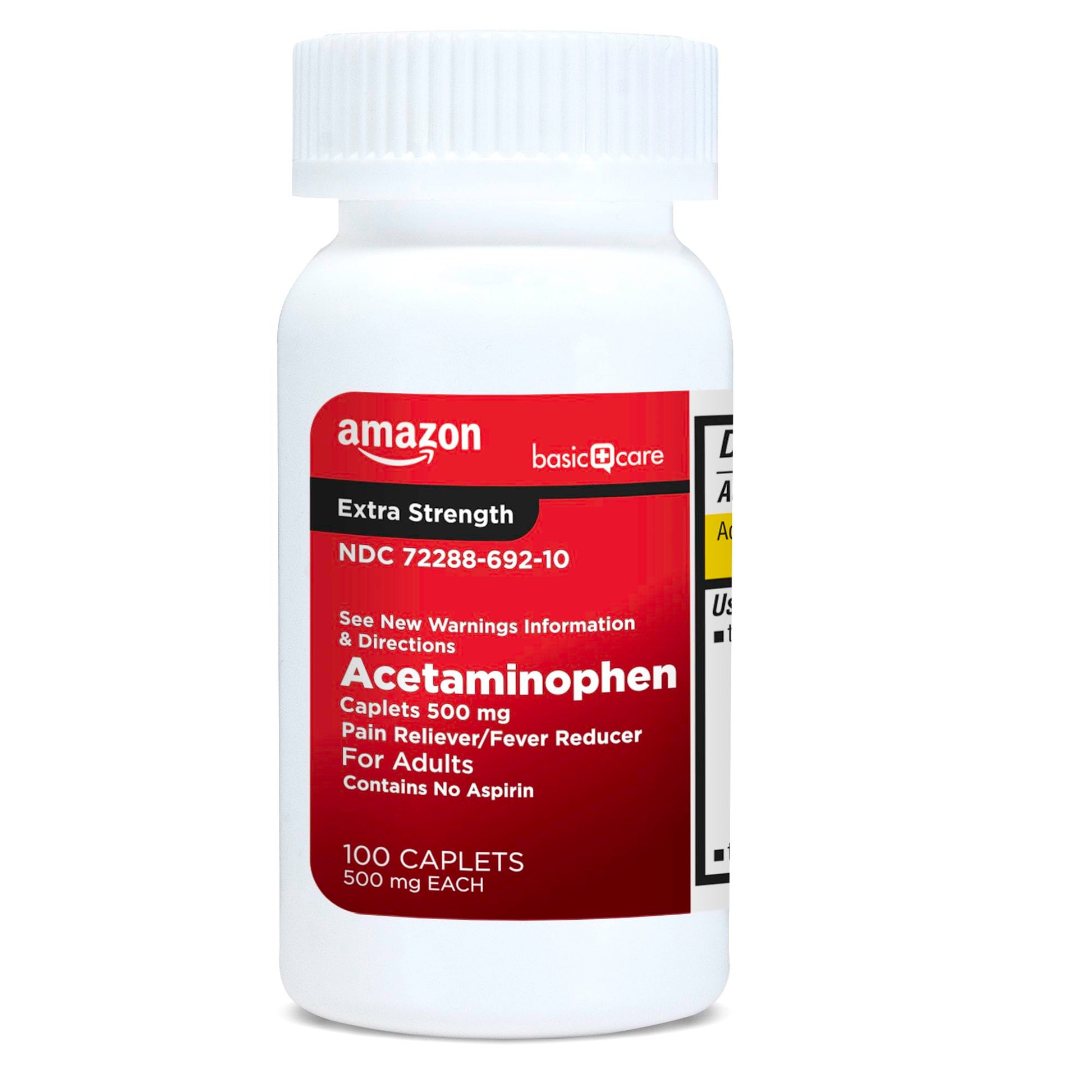 Amazon Basic Care Extra Strength Pain Relief, Acetaminophen Caplets, 500 mg, Pain Reliever/Fever Reducer, 100 Count (Packaging may vary)