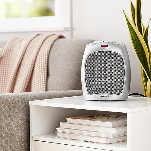 Amazon Basics 1500W Ceramic Personal Heater with Adjustable Thermostat, Silver