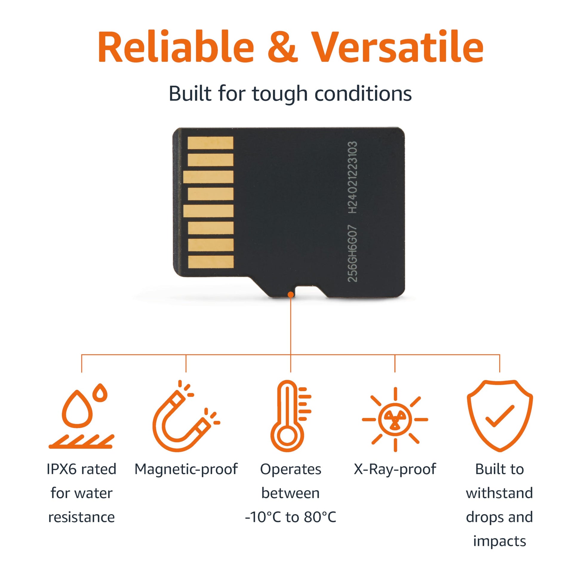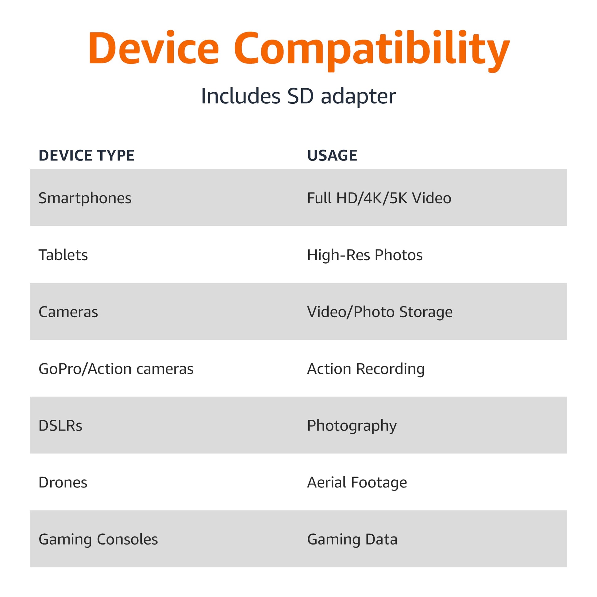 - 256B Micro SD Card compatible with smartphones, tablets, cameras, GoPro/action cameras, laptops, desktop computers, DSLRs, drones, gaming consoles and more