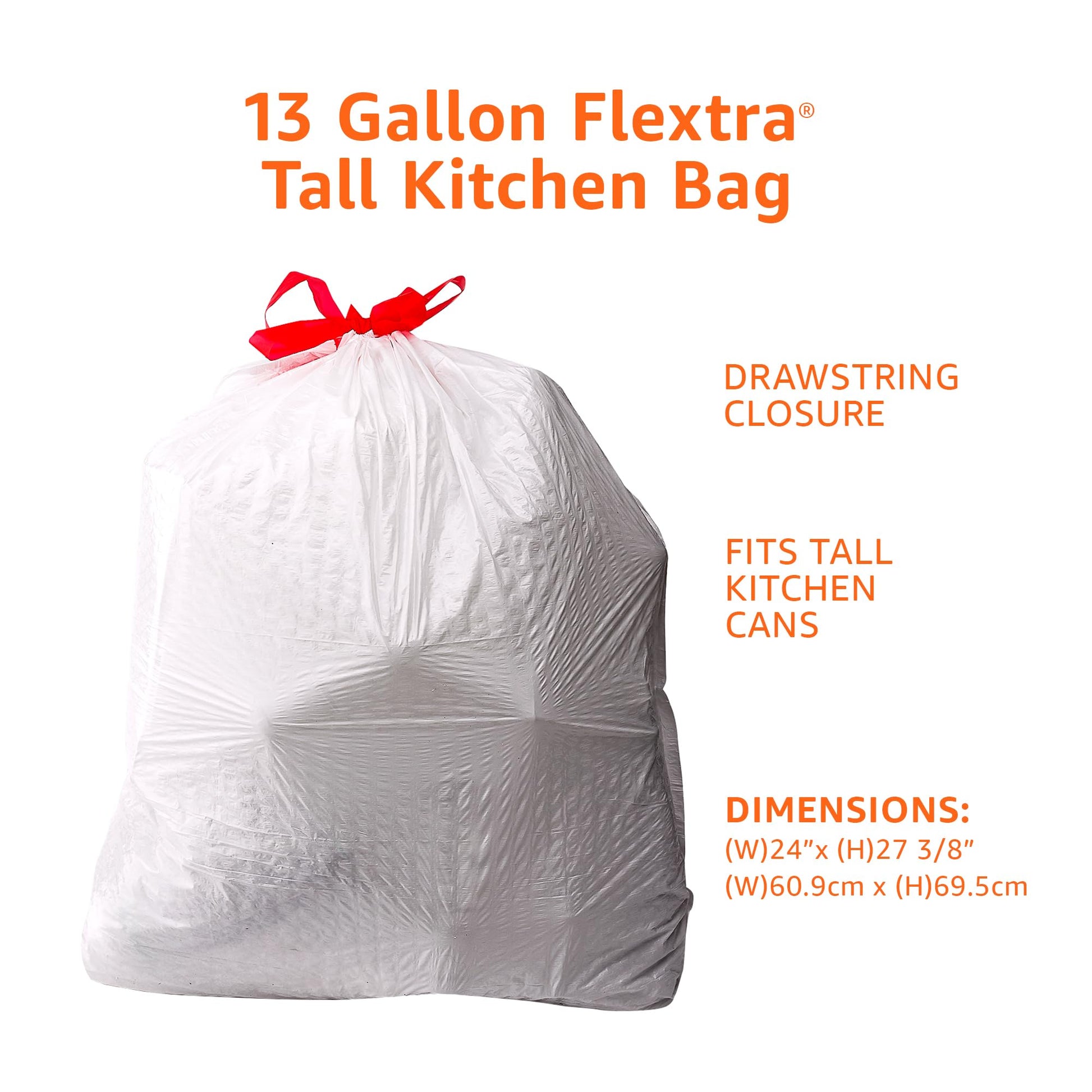 - Tear-resistant white plastic material with reliable Flextra strength. Flextra technology embosses the trash bag with a flex pattern, to better control the stretch of the bag to assist in minimizing tears and punctures