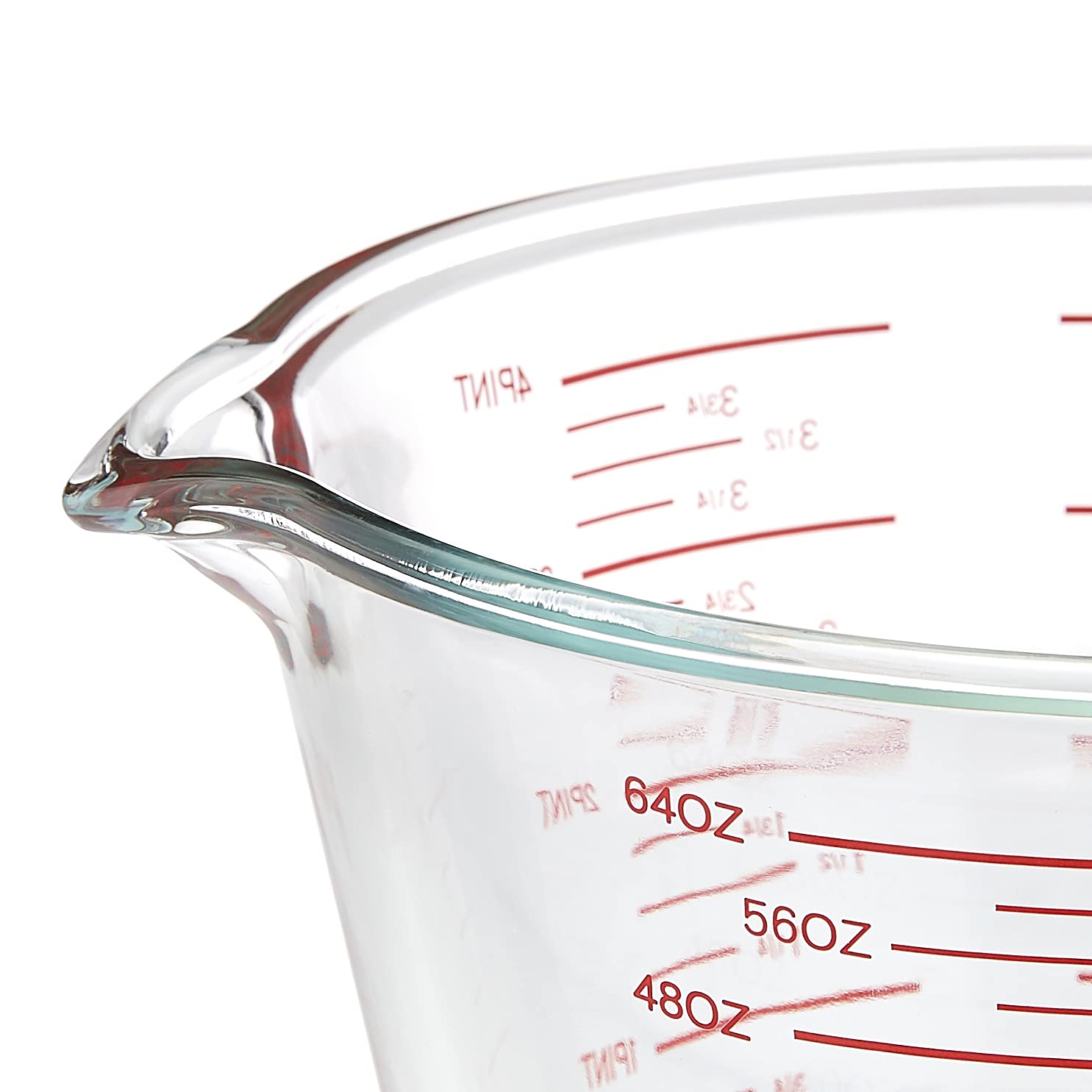 Amazon Basics Glass Measuring Cup, Precise 8 Cup Capacity, Clear Kitchen Measuring Tool, 2 L (Previously AmazonCommercial Brand)