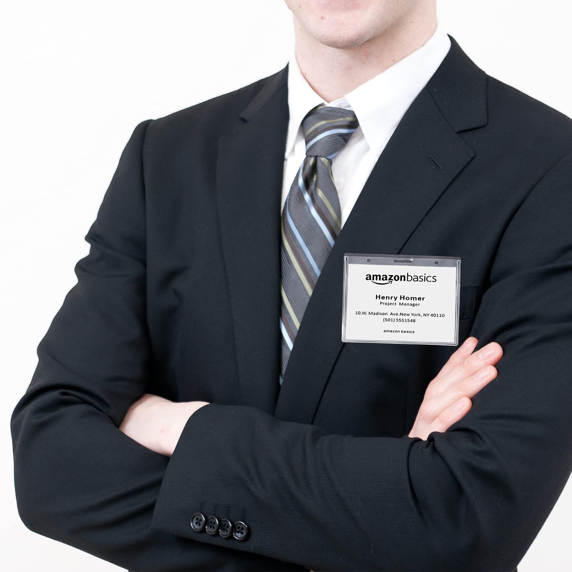 Amazon Basics Horizontal Magnetic Badge Holder - Pack of 100, Clear