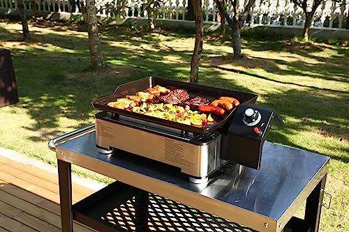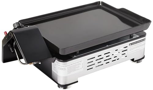 - Gas griddle cooking surface with one burner, 221-inch cooking area, and sturdy footpads; perfect for grilling food outside