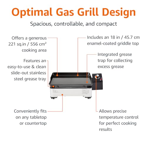 Amazon Basics Outdoor Portable 1 Burner Tabletop Gas Griddle with 18-Inch Enamel Coated Top