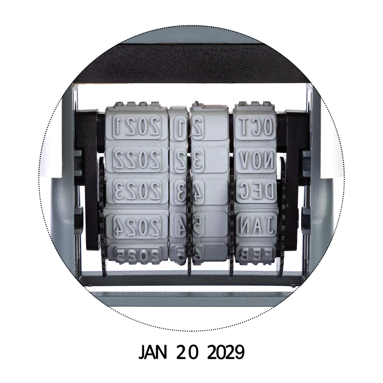 - Durable, customizable rubber stamp head creates date combinations up to 10 years