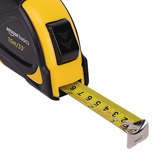 Amazon Basics Self-Locking Tape Measure - 33-Feet (10-Meters), Inch/Metric Scale, MID Accuracy