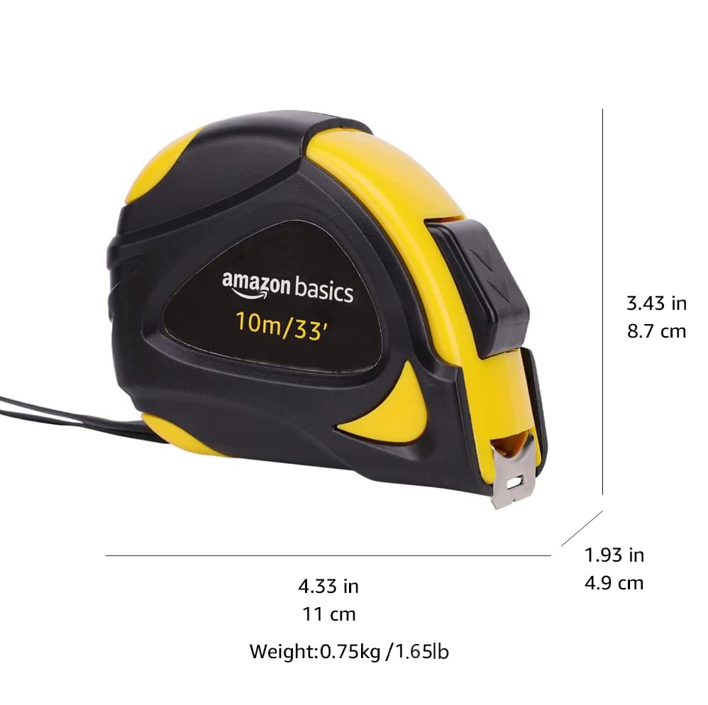 Details: Product Description Amazon Basics Self-Locking Tape Measure - 33-Feet (10-Meters), Inch/Metric Scale, MID Accuracy From the Manufacturer Amazon Basics