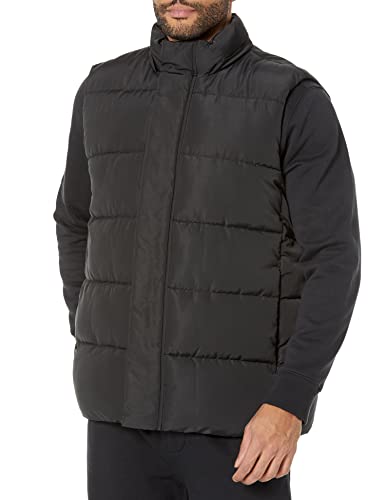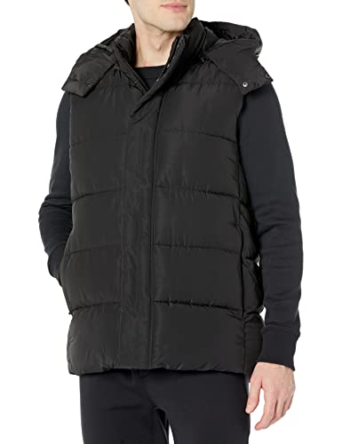Amazon Essentials Men's Relaxed-Fit Water Repellent Recycled Polyester Hooded Puffer Vest (Previously Amazon Aware), Washed Black, Small