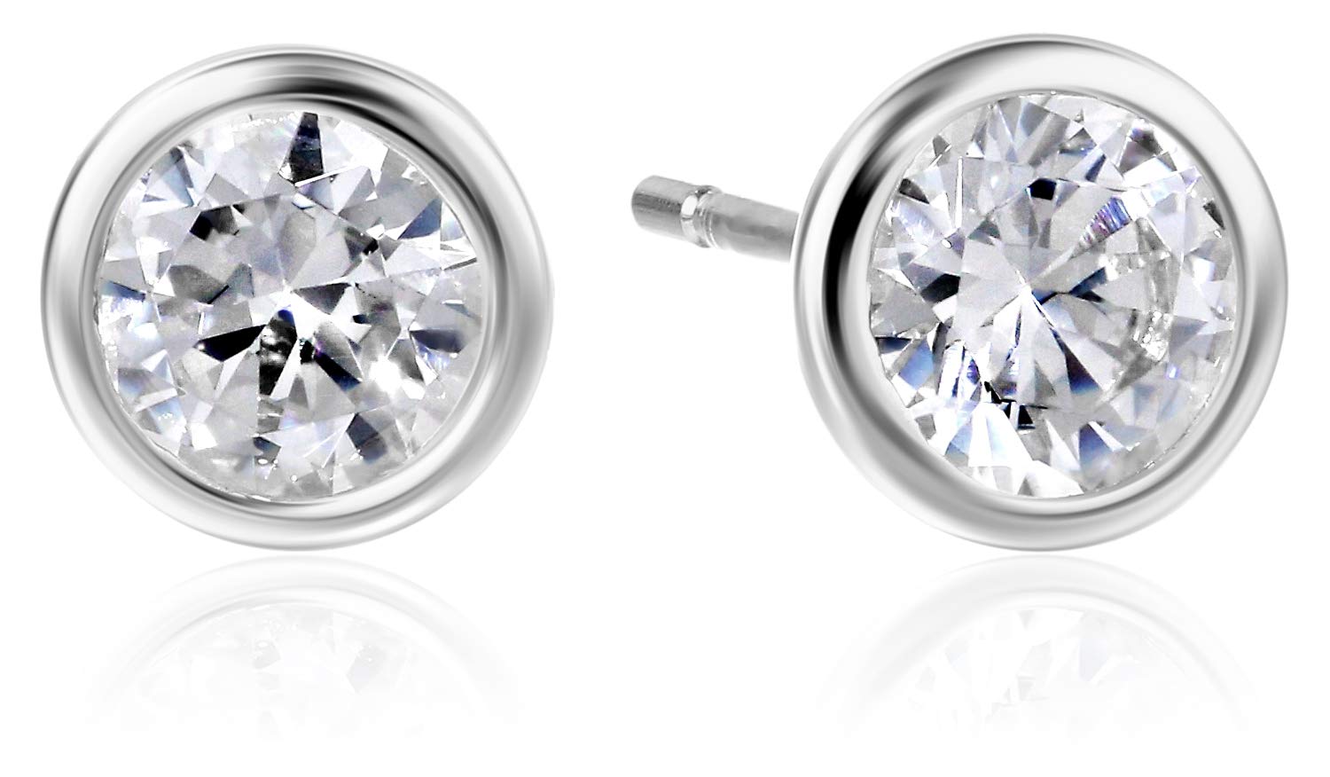- STYLE: Sterling silver with cubic zirconia bezel stud earrings are 6 mm (0.24") in diameter; these elegant and sparkling stud earrings feature round-cut cubic zirconia stones that are bezel-set in sterling silver setting