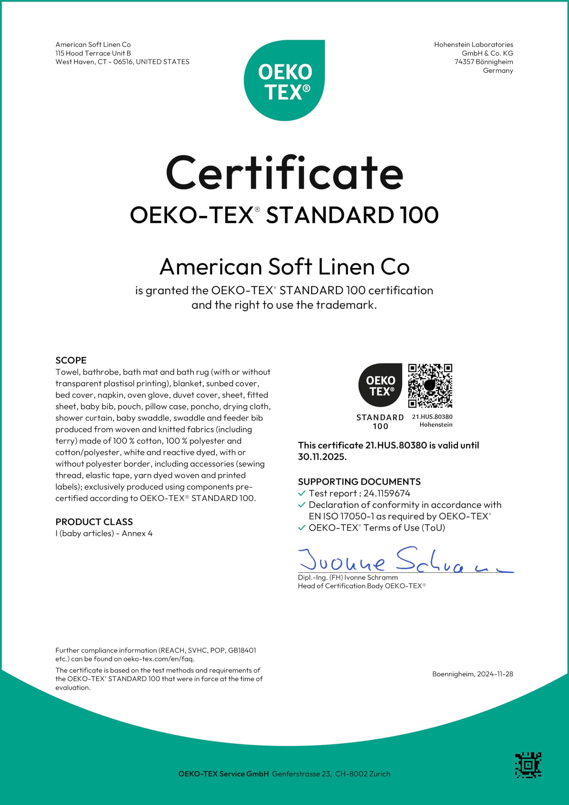 - ✅ These Towels are OEKO-TEX STANDARD 100 Certified and OEKO-TEX STANDARD 100 keeps you and your family safe by testing [each component of] a certified product against a list of over 1,000 harmful substances.