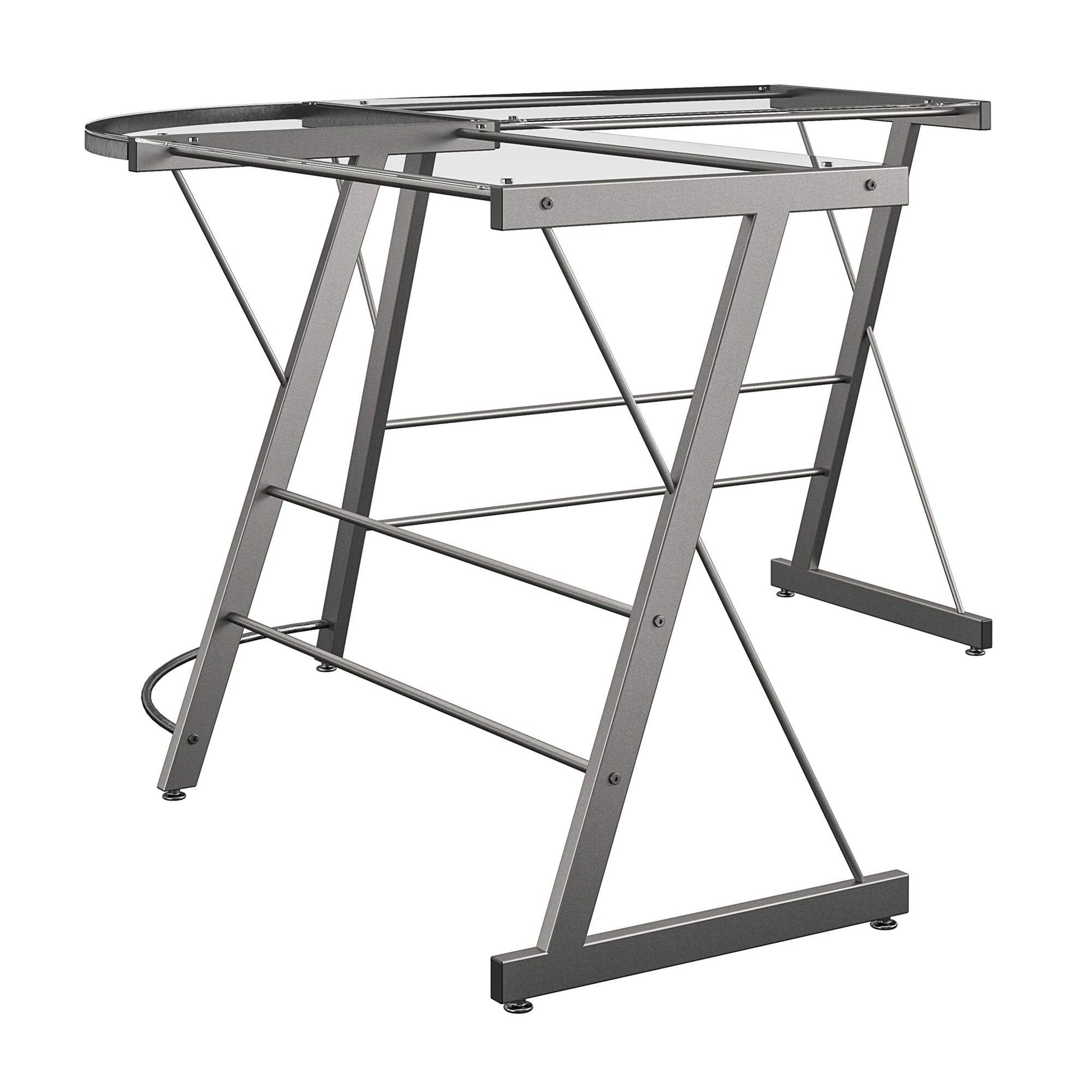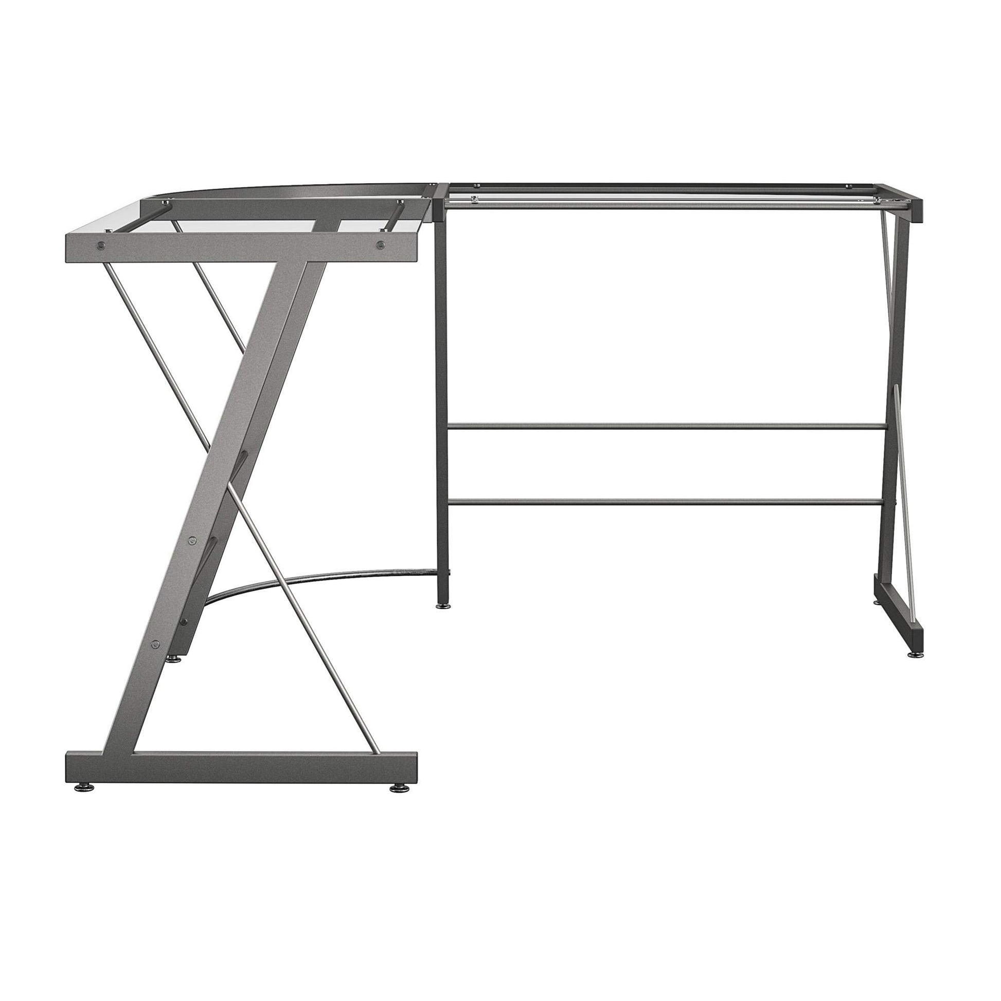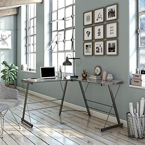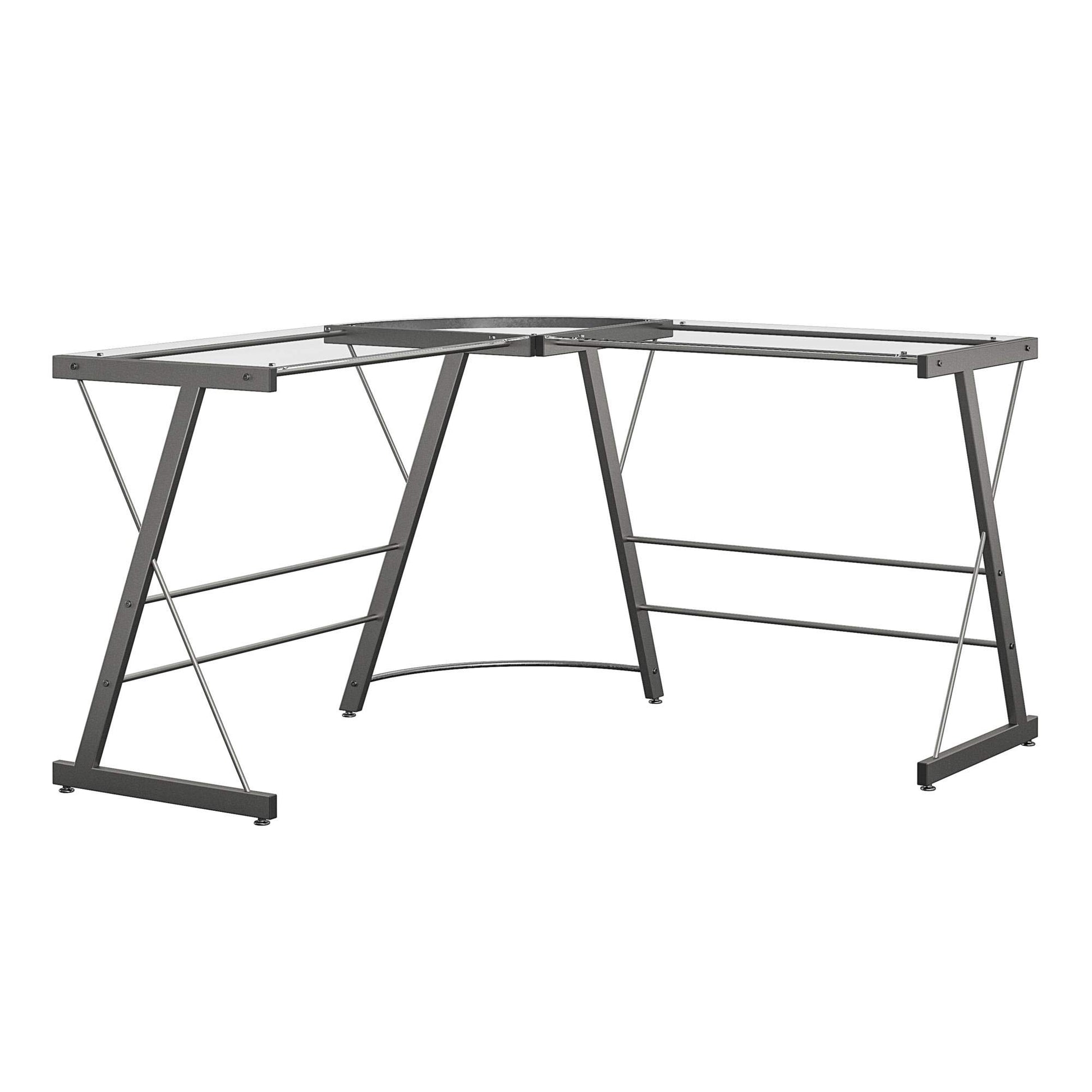 Details: The Ameriwood Home Odin Glass L-Shaped Computer Desk gives your office a contemporary feel with a modern twist. This Desk combines a sleek glass work surface with a streamlined gray metal frame that’s sure to look beautiful in any space.