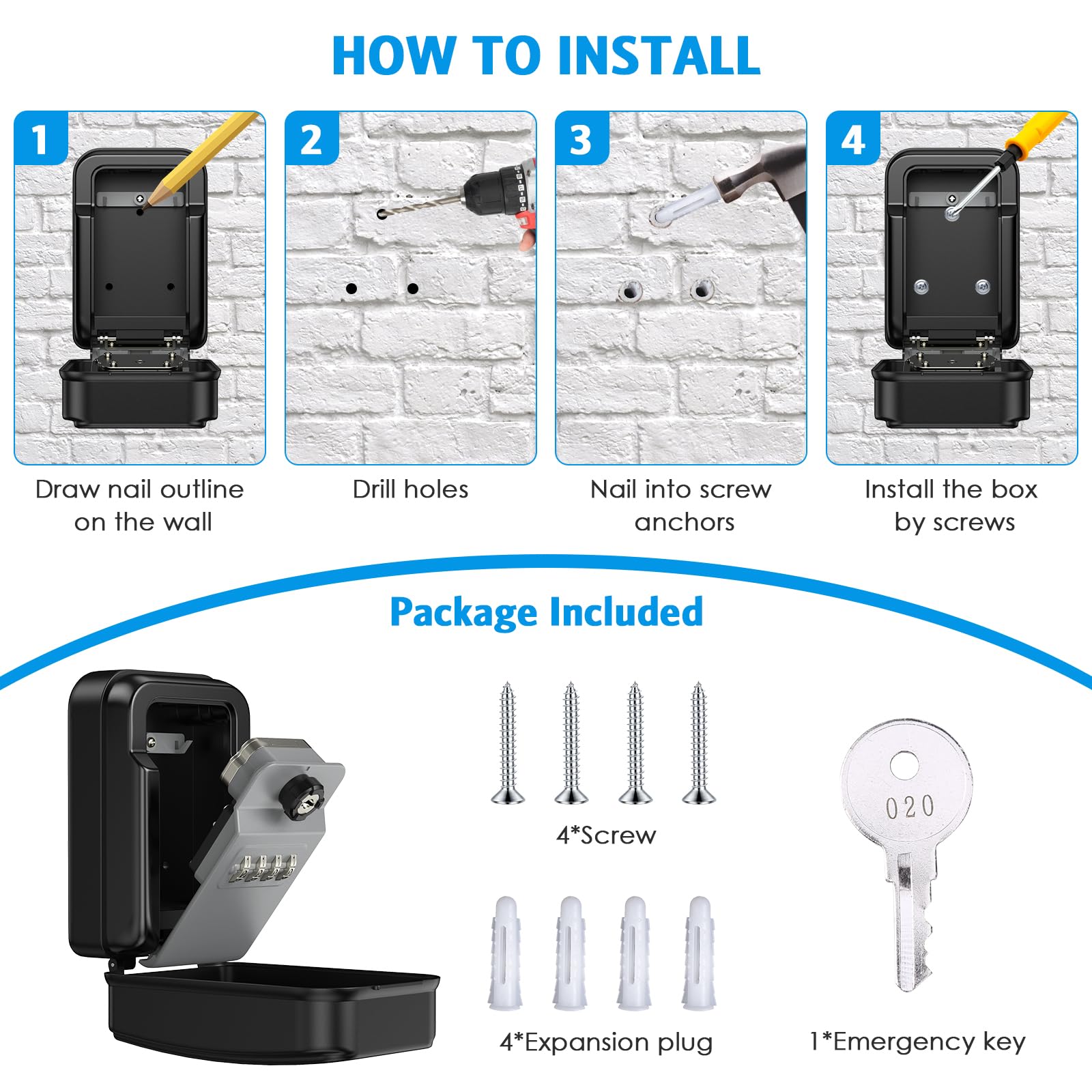 - Wall Mounted Lockbox: Easy To Install!Securely fix it to walls indoors or out using the provided screws and wall anchors. Perfect for homes, offices, garages, and rental properties.
