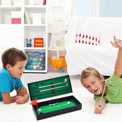 - Mini Golf Game - The package includes: 1 x red flag, 2 x golf balls, 3 x mini golf pens (red, blue, and black), 1 x mini golf putting green. It's time to wind down after a long day work. Just spend several minutes for a few rounds and say goodbye to the tedious working time.
