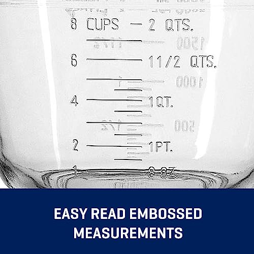 - INCLUDES: This prep set contains (1) 2-quart clear glass batter bowl. Embossed lines make measuring easy, a molded spout facilitates reliable pouring, and extra-thick glass withstands the stresses of the most demanding kitchen.