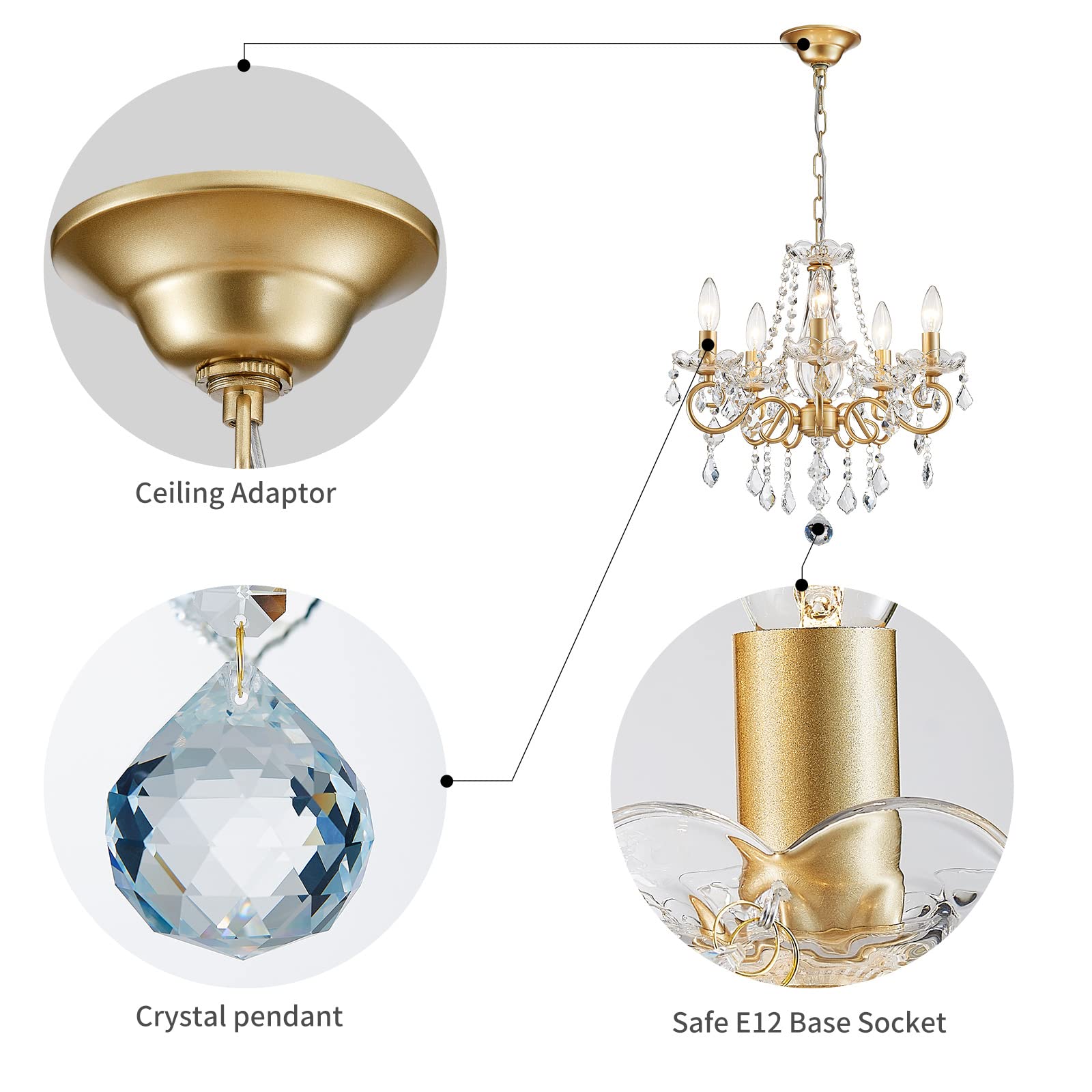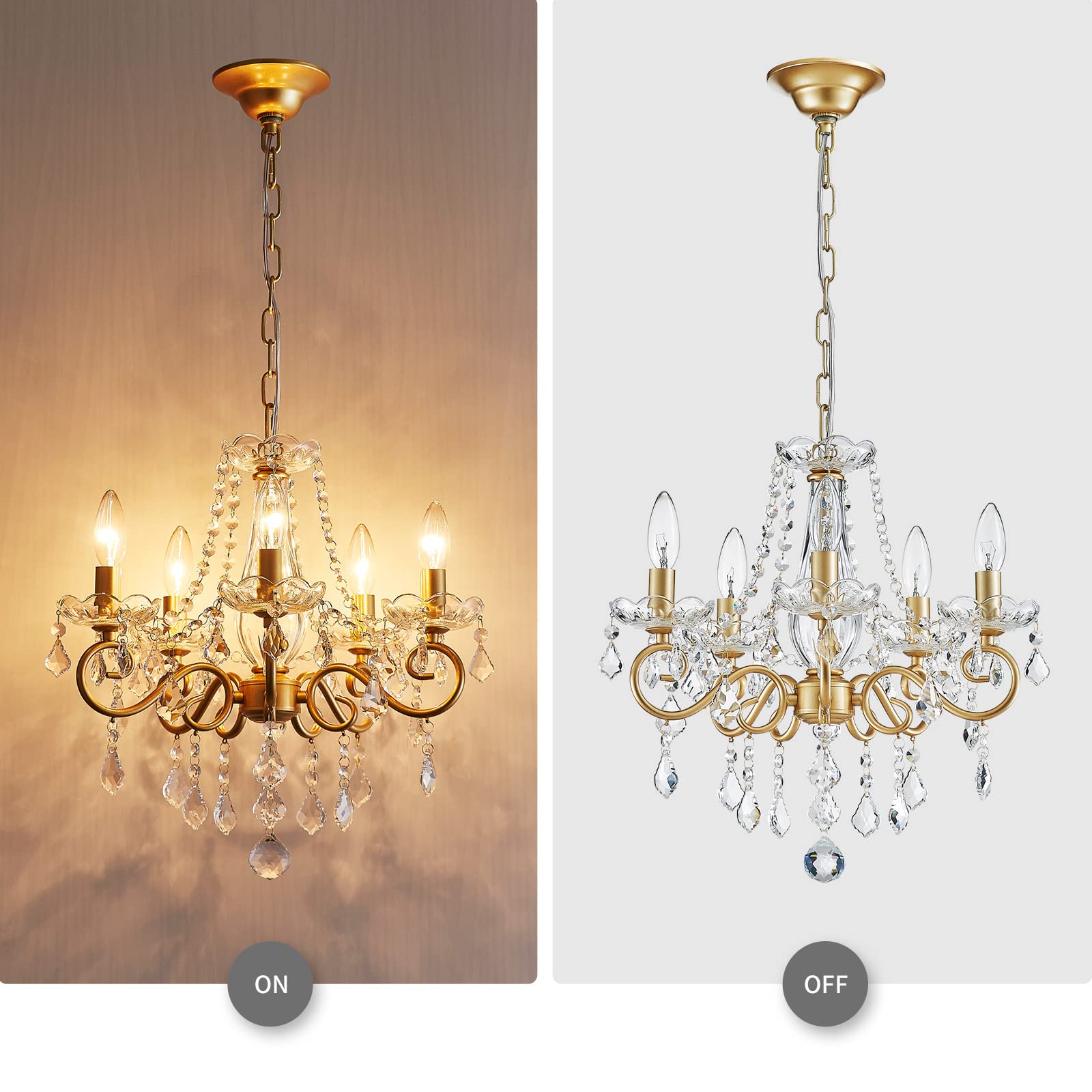 ANJIADENGSHI Mini Crystal Chandelier K9 Crystal Lighting Chandelier for Living Room 5 E12 Bulbs High 16.5 in x Diameter 16.9 in, Golden