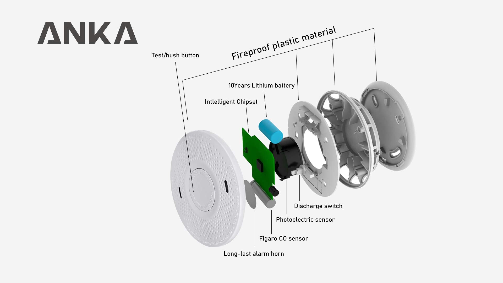 ANKA Smoke and Carbon Monoxide Detector Alarm,10 Year Battery, Not Hardwired, Dual Sensor Smoke CO Combo Alarm with Silence Function, UL 217 & UL 2034