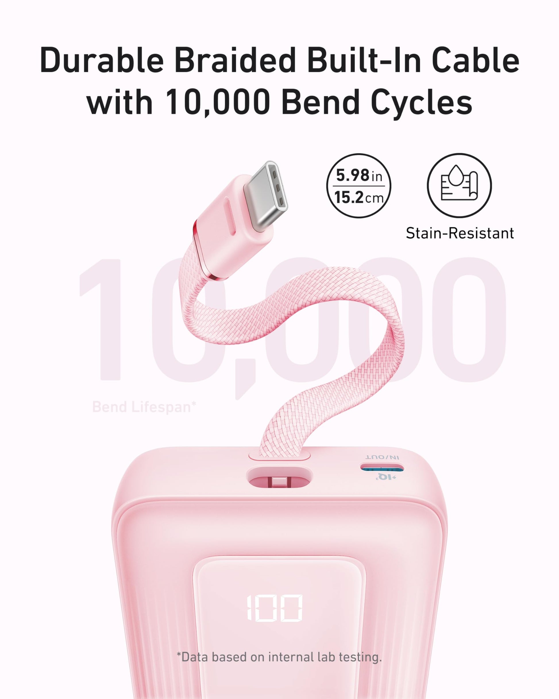 - What You Get: Anker Zolo Power Bank (20K, 30W) with a 5.98-inch (15.2 cm) built-in USB-C cable.