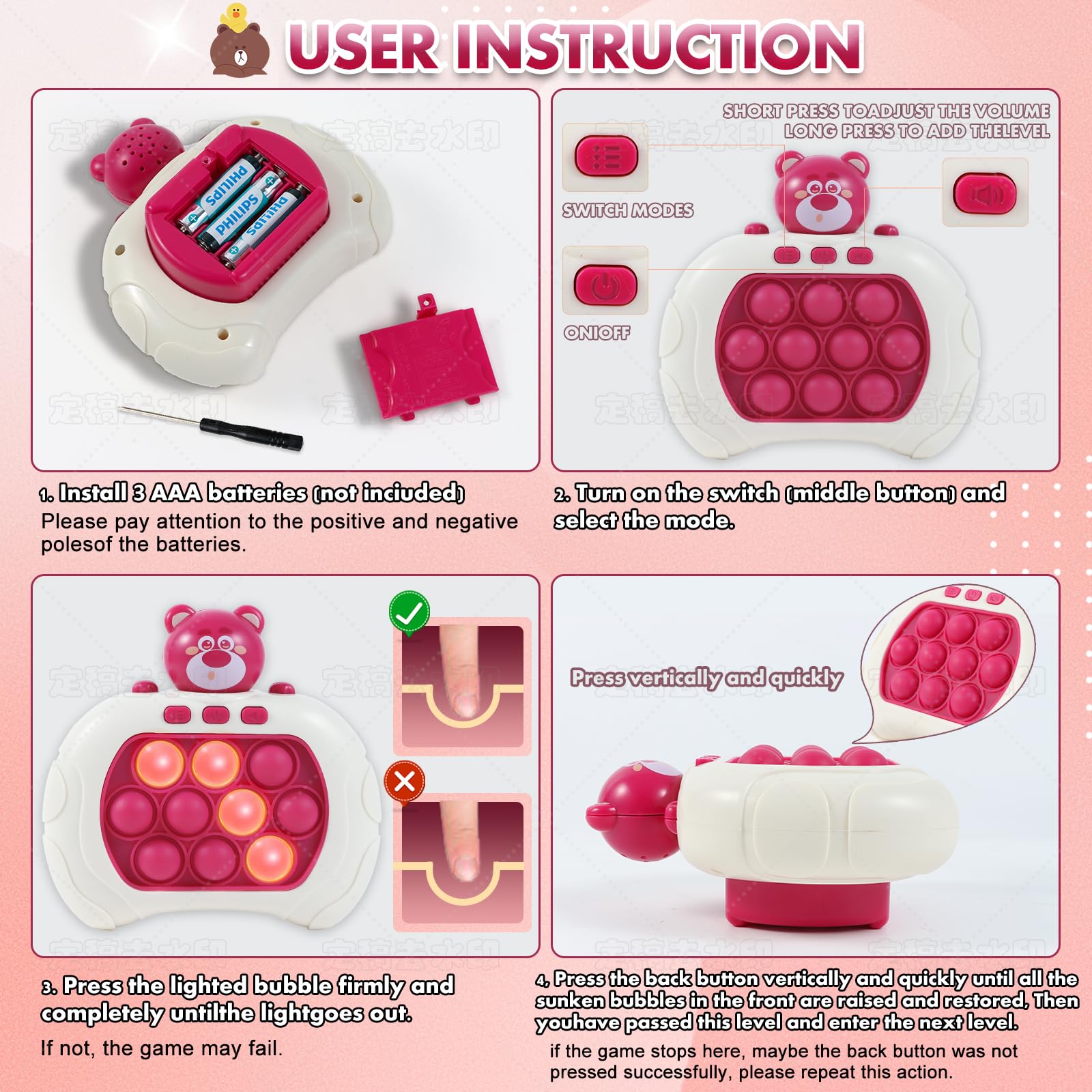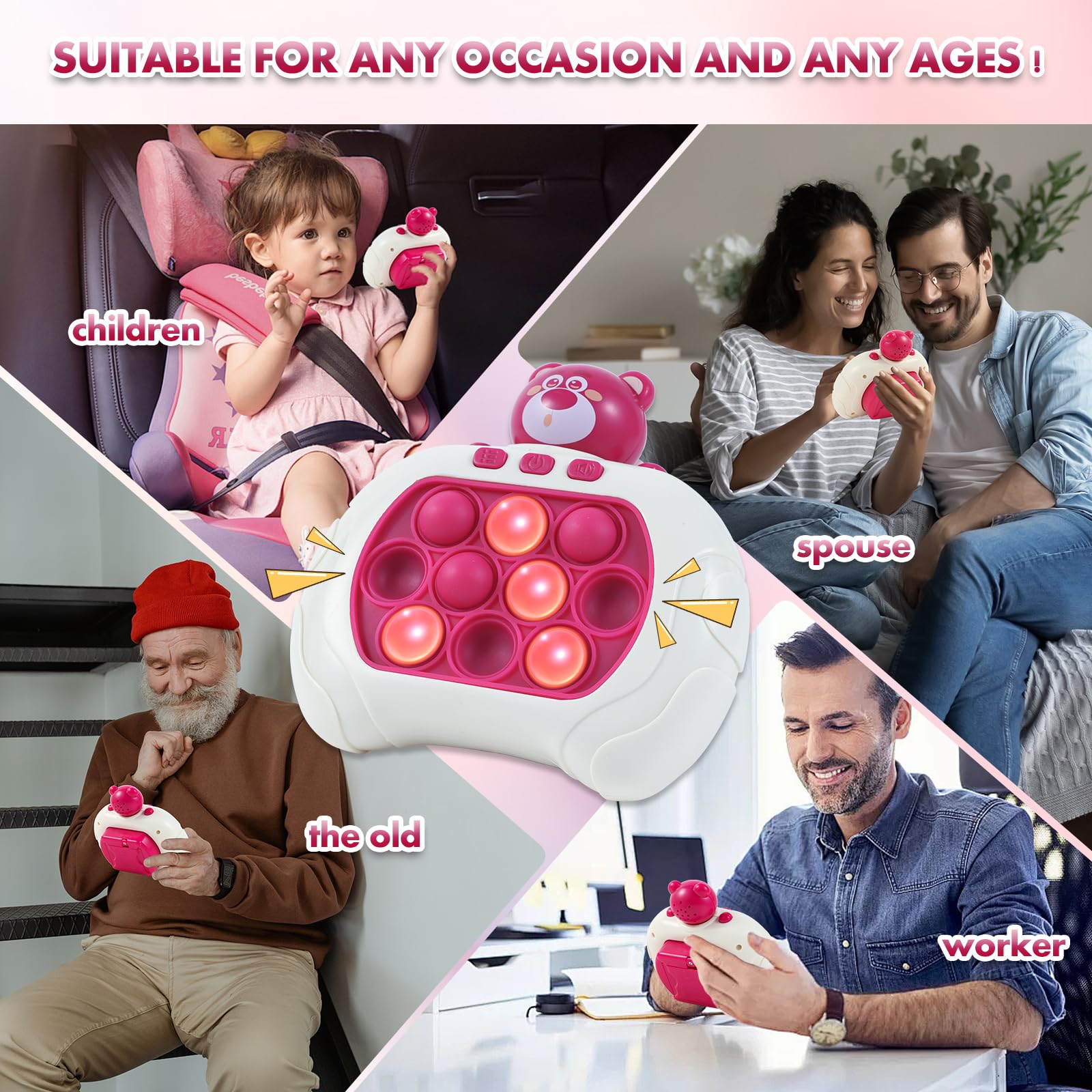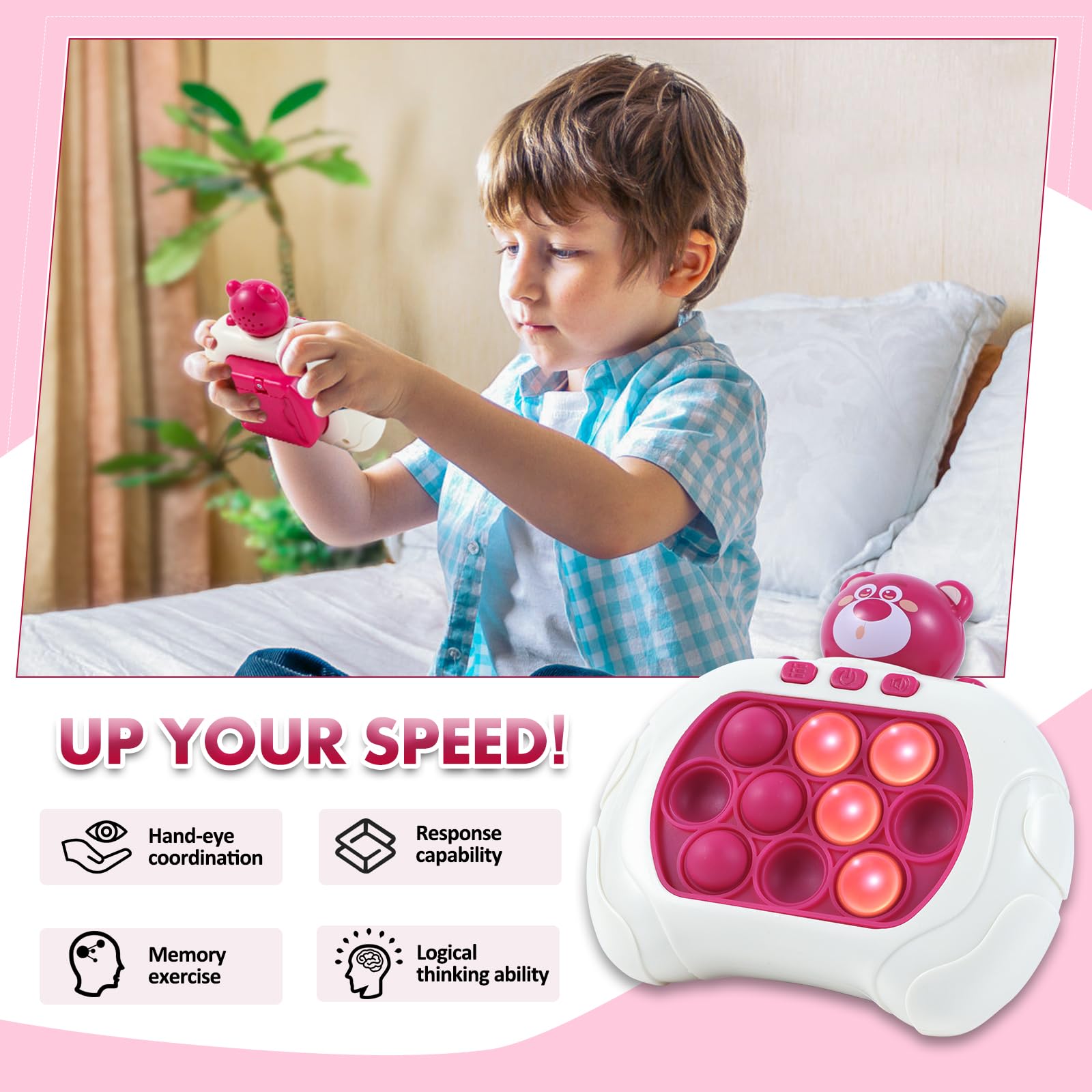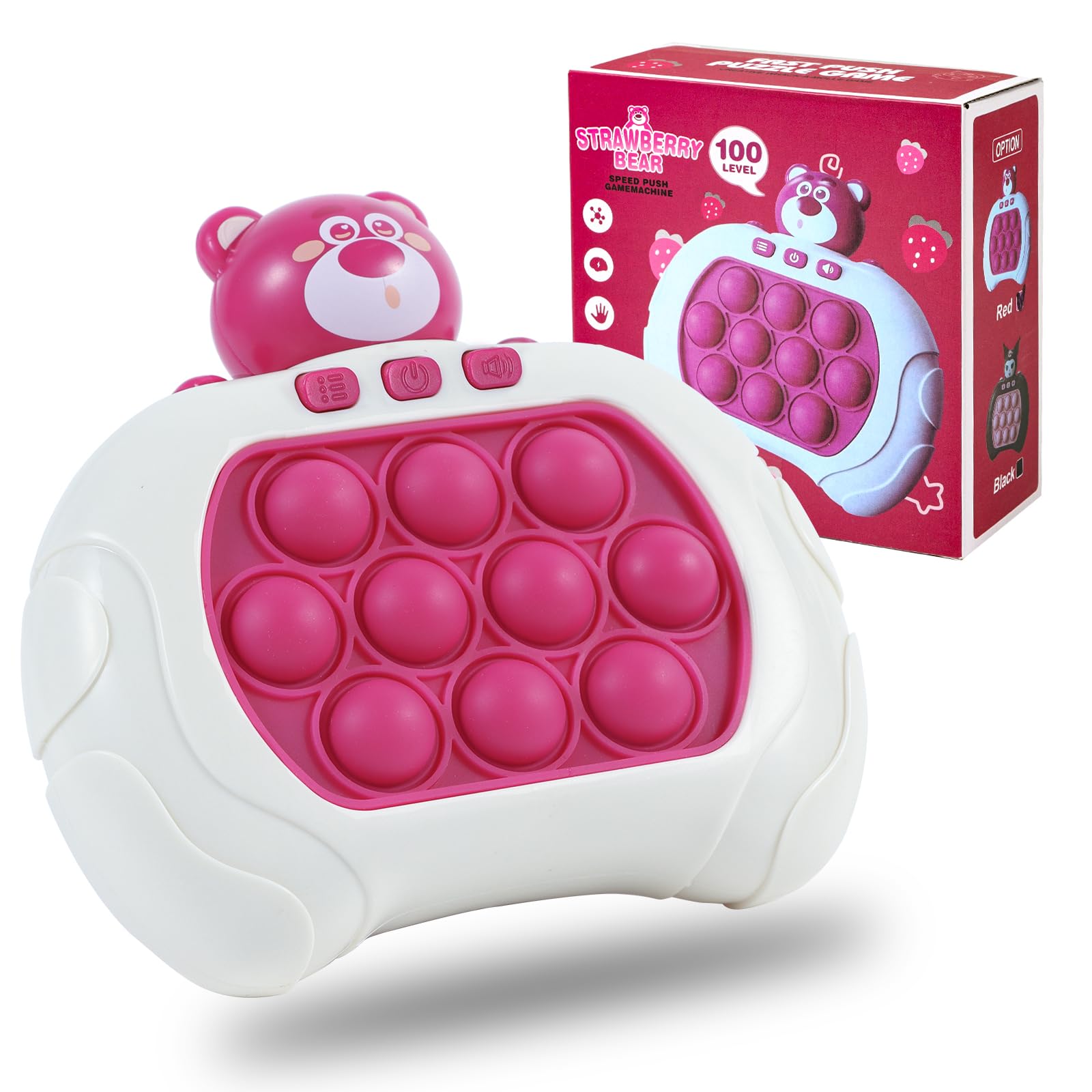 Anpole Pop Fidget Toys Quick Push Game for Kids Adults, Handheld Game Fast Puzzle Game Machine, Push Bubble Stress Relief Toy Party Favors Toy, Kids Gifts (Pink Bear)