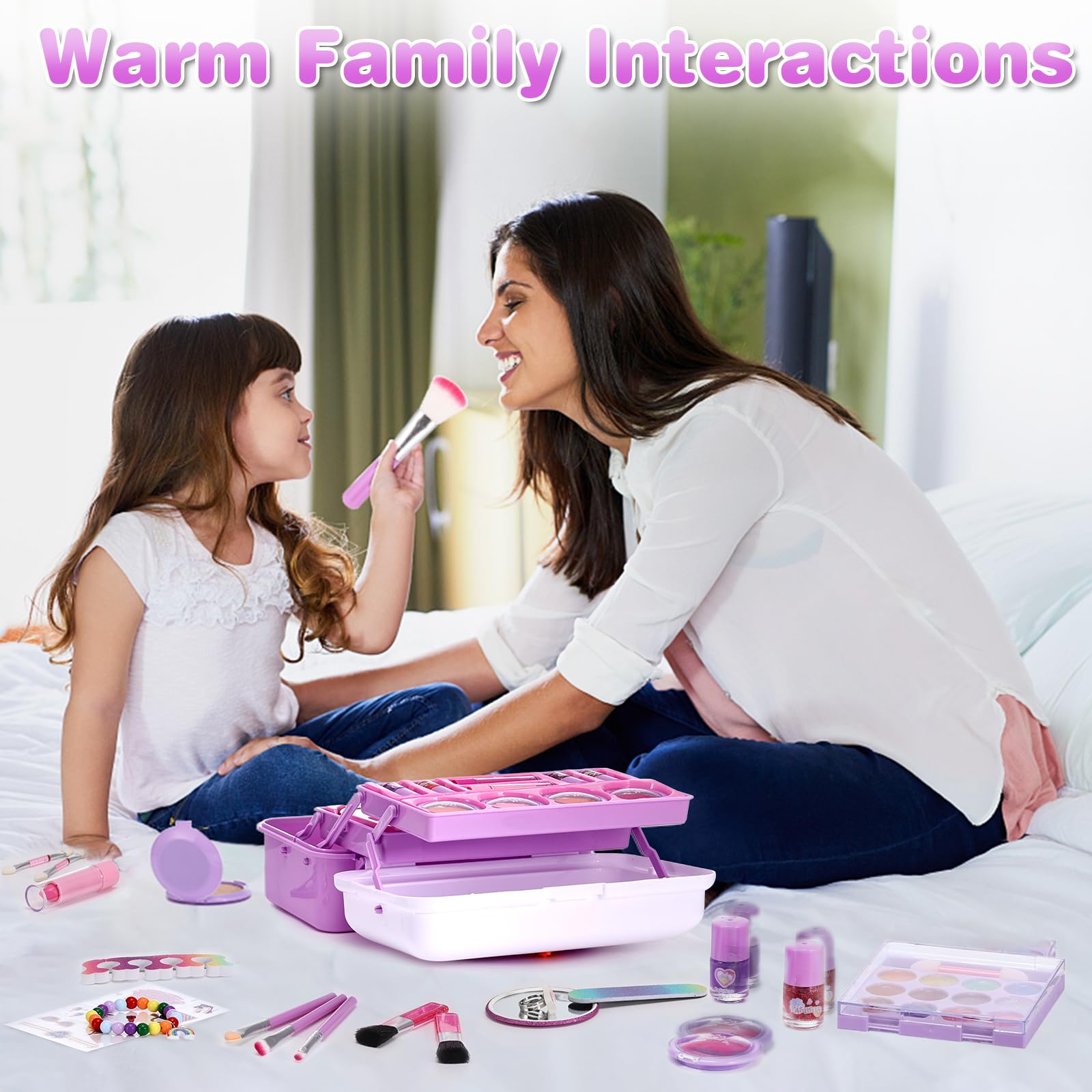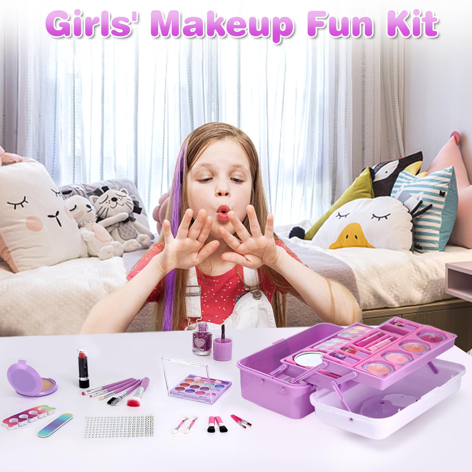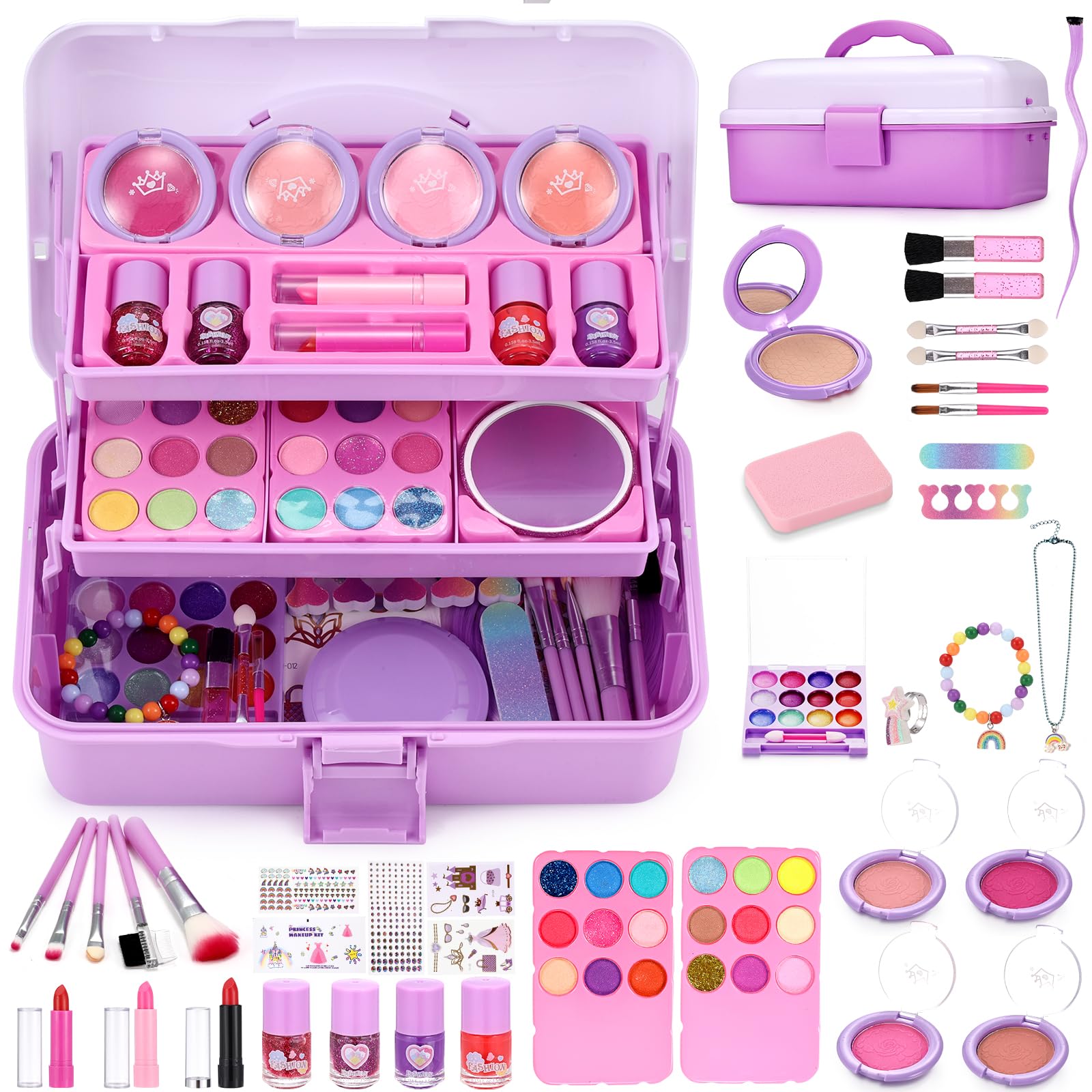 Anpro Kids Makeup Kit for Girl 5-8, 68 Pcs Safe & Washable Makeup for Girls,Non-Toxic Little Girl Makeup Set,Makeup Kits for Kids Toddler Girl Toys Christmas & Birthday Gift (Purple)