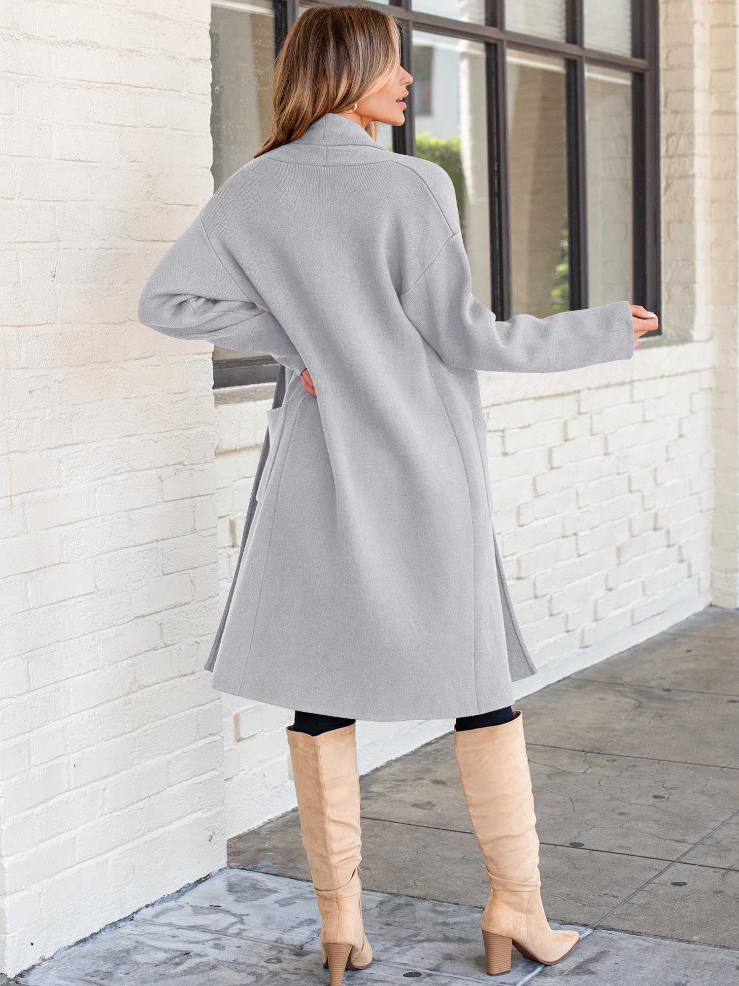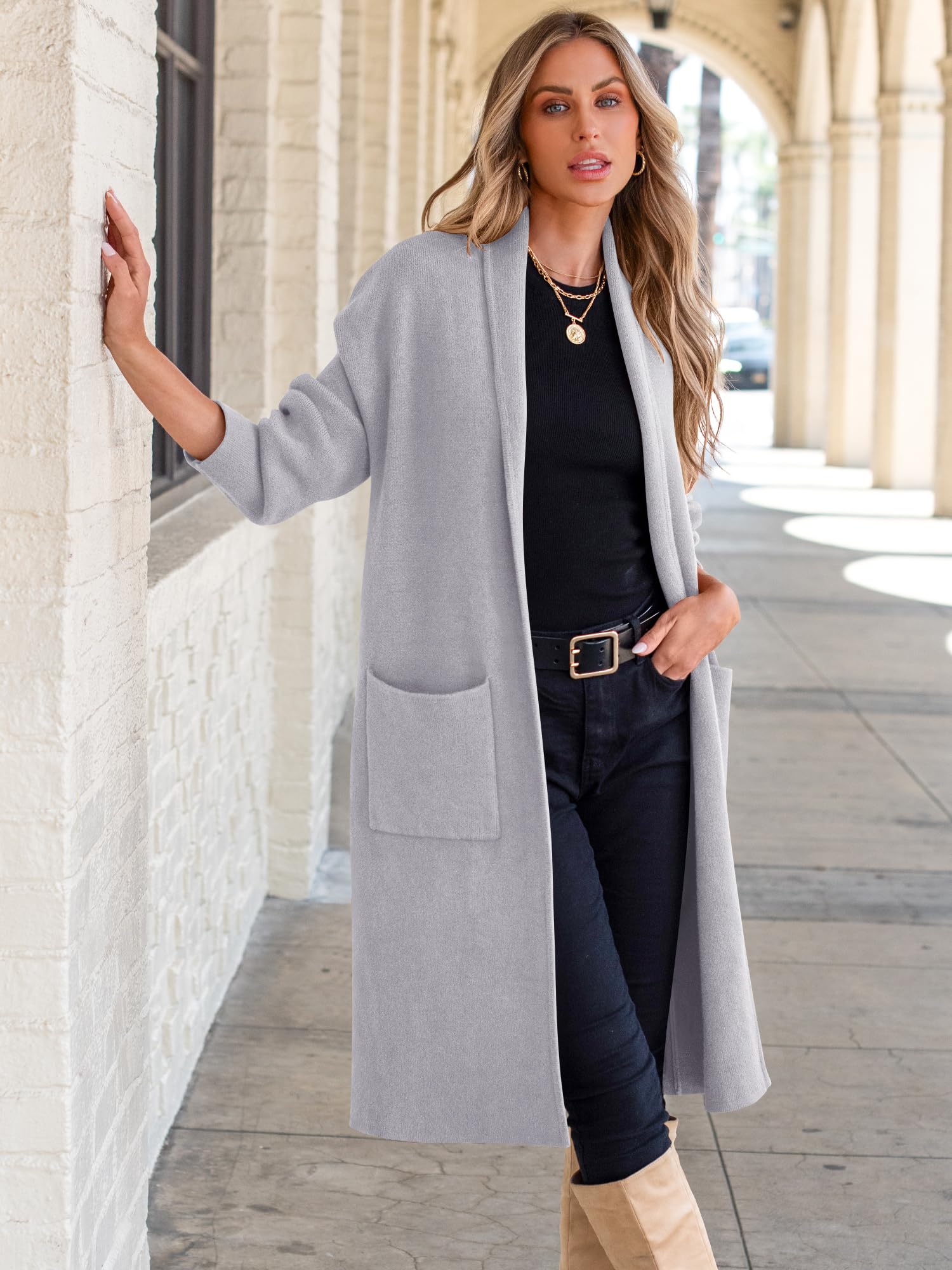 - Features - Casual open front, warm long length, convenient two pockets, stylish lapel neckline. Solid colour design can be paired with basic tops, leggings, jeans and skirts. Perfect for work, school, vacation, shopping and daily wear.