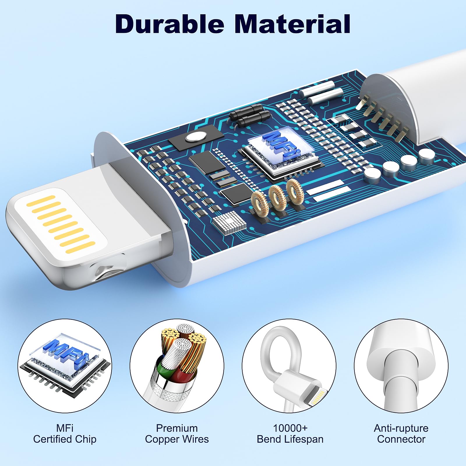- 【Wide Compatibility】Lightning charger fast charging: This lightning cable is designed for fast charging and delivers the speed you need to keep your apple 14/14 Pro/14 Pro Max/14 Plus/13/13Pro/13ProMax/13Mini/12/12Pro/12ProMax/12Mini/11/11Pro/11Pro MAX/XS/XS MAX/XR/X/8/8Plus/iPad 8th/2020/Pro 12.9" gen1/Pro 12.9" gen2/Pro 10.5"/Air3 10.5"/mini5 7.9" fully powered up. With its high-quality design and construction, you can trust it to deliver reliable performance every time you use it