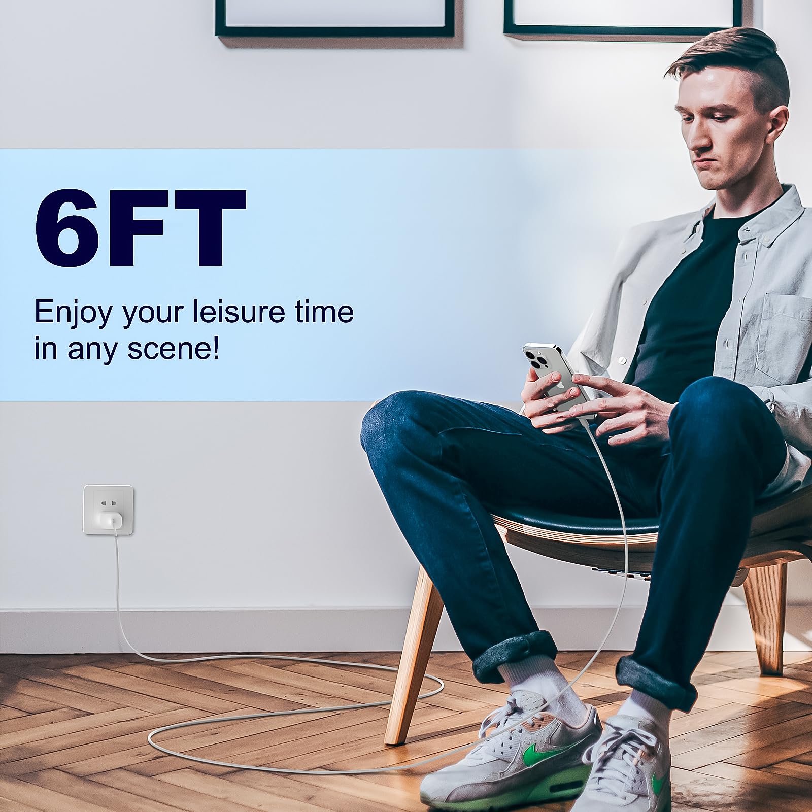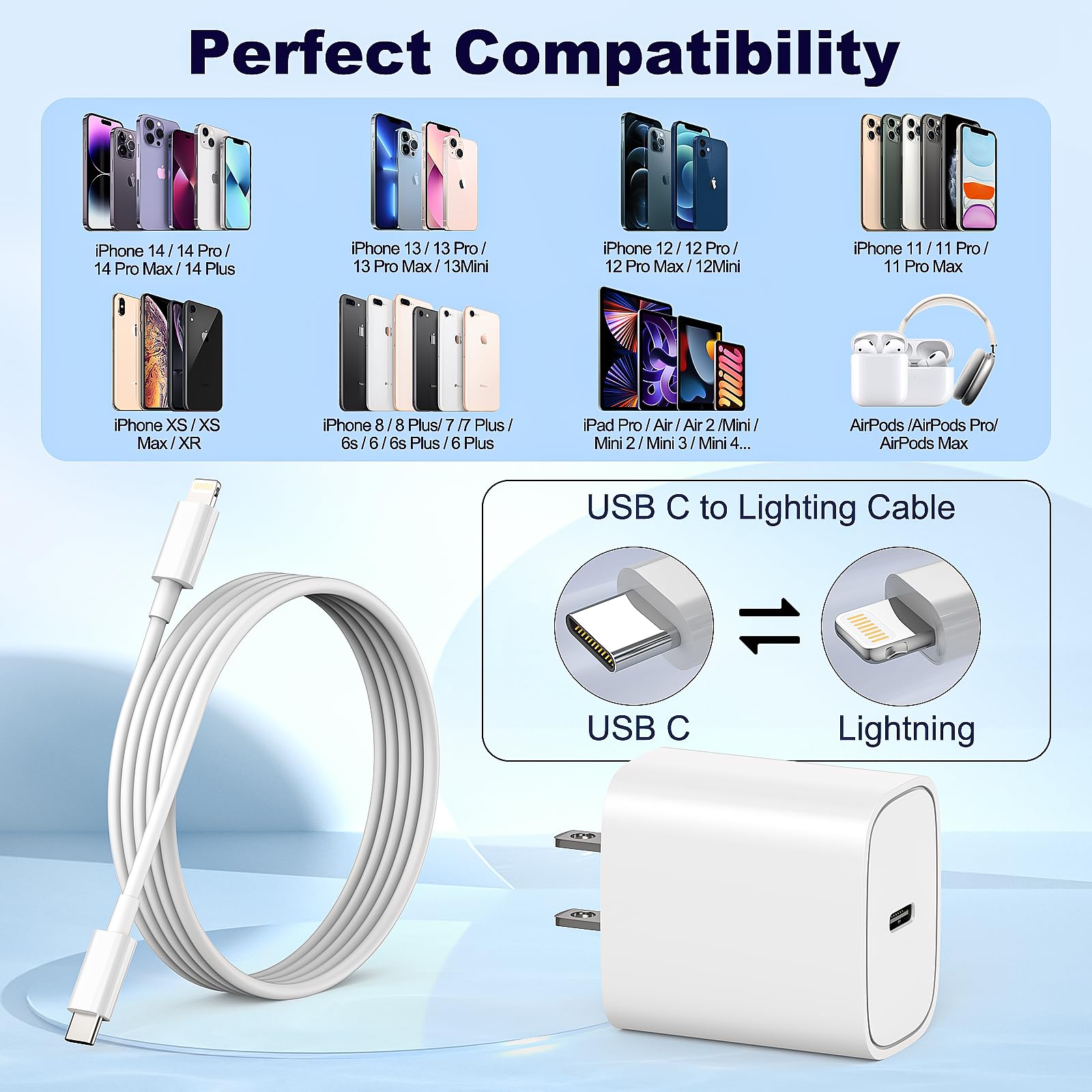- 【What You Get】:2PACK USB C Wall Chargers and 2PACK 6ft USB C to lightning cables for all your needs: Whether you need a long charger cable for your apple or a short one for travel, this lightning cable provides the flexibility you need to stay connected. It's the perfect lightning charger for all your needs