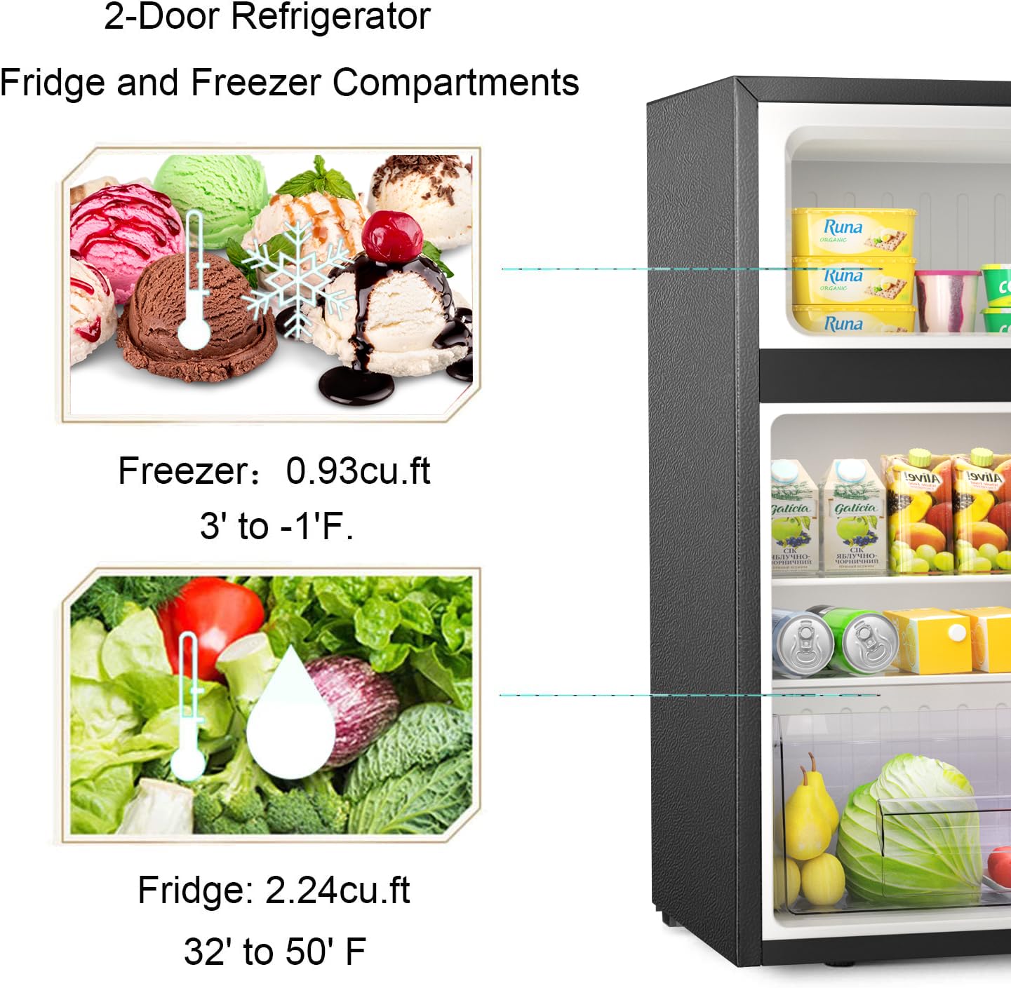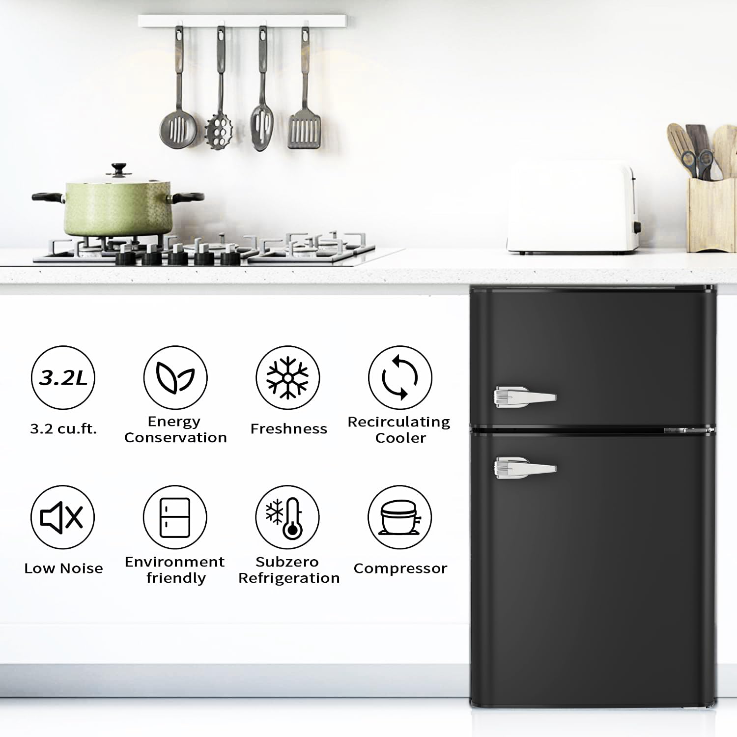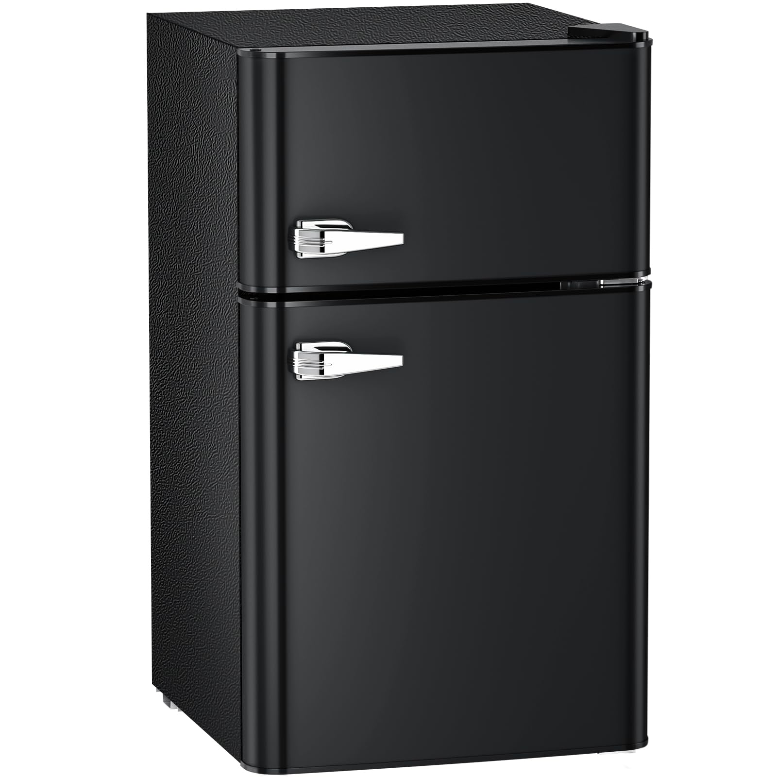 Antarctic Star Compact Mini Refrigerator Separate Freezer, Small Fridge Double 2-Door Adjustable Removable Retro Stainless Steel Shelves Garage Camper Basement/Dorm/Office 3.2 cu ft.Black