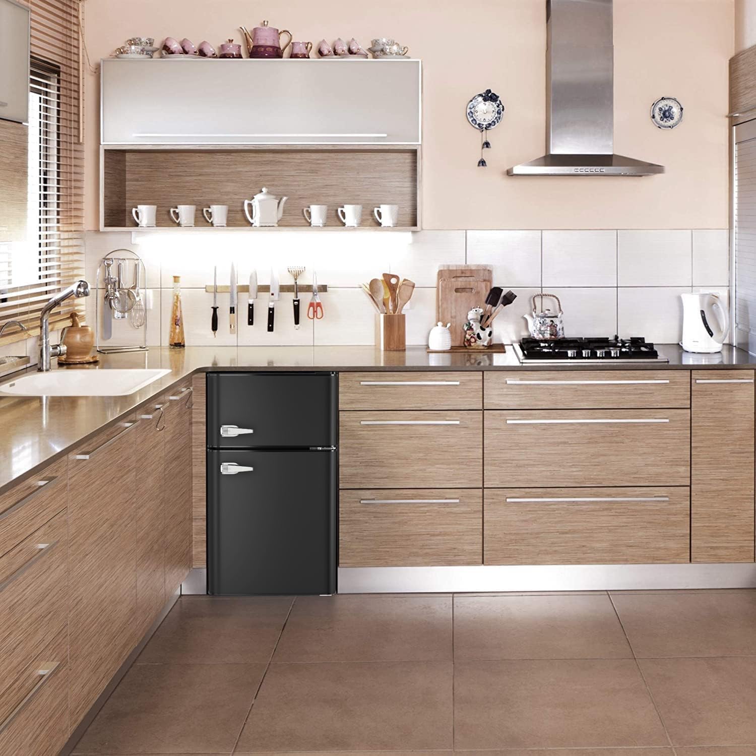 - Classic Design -This fridge is designed with a sleek black and white exterior that adds a classy touch. It can match any of your furniture,better for the home, dorm rooms, small office spaces, garages, workshops,and more.