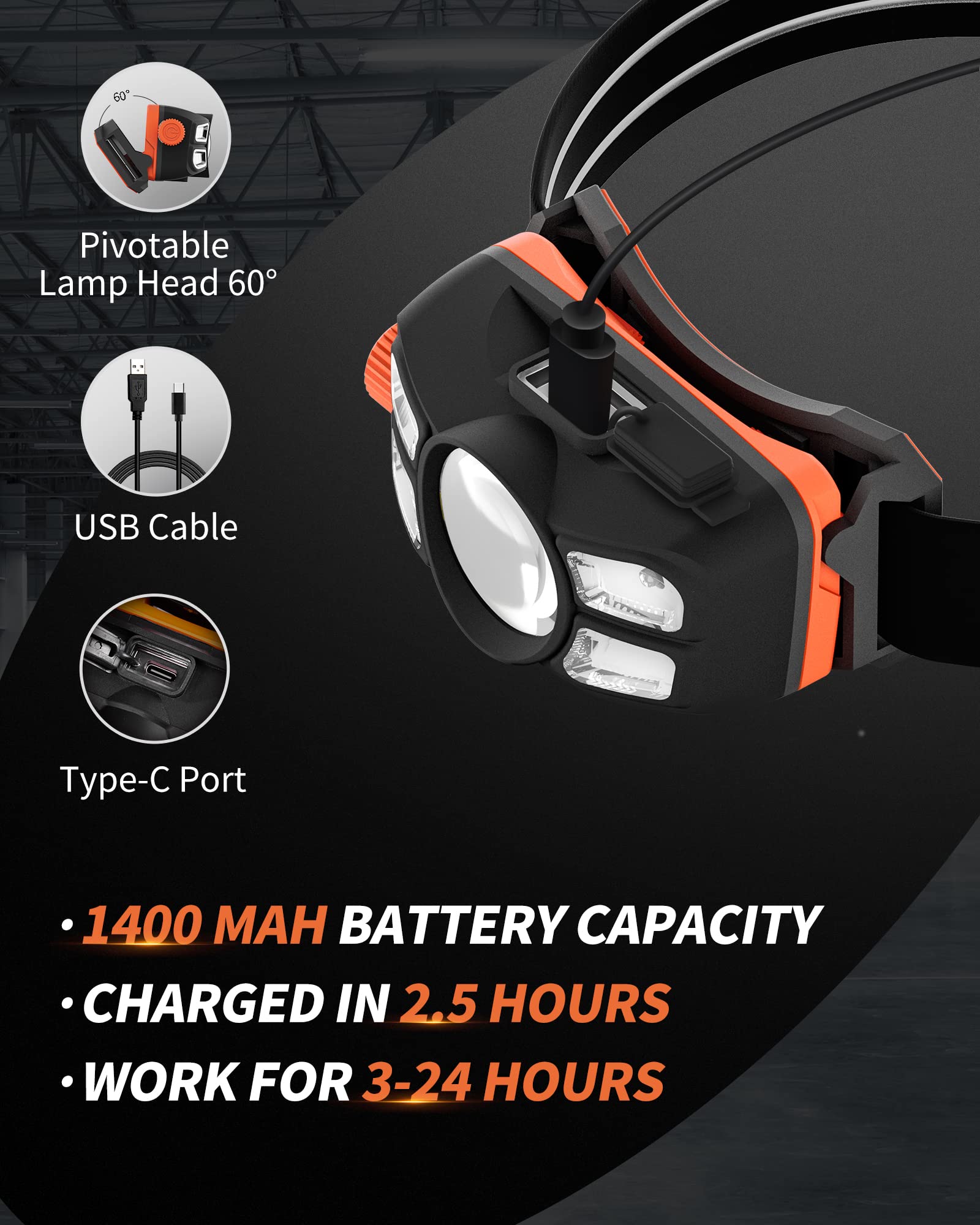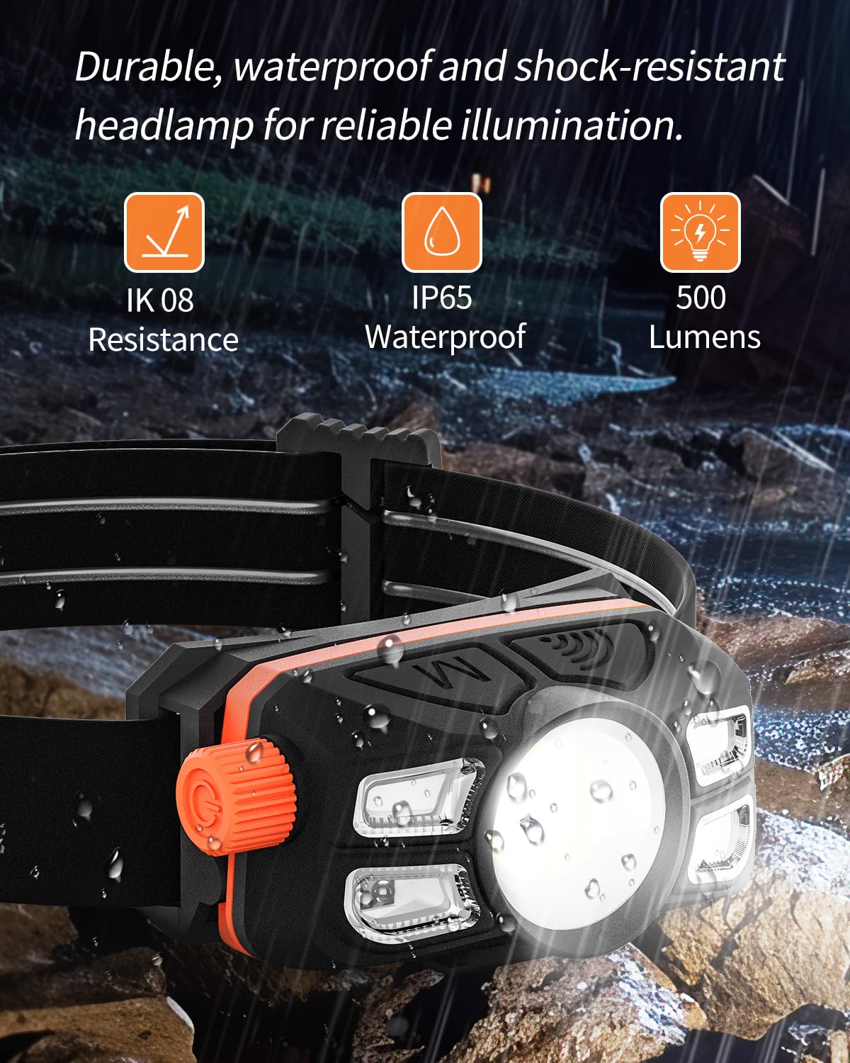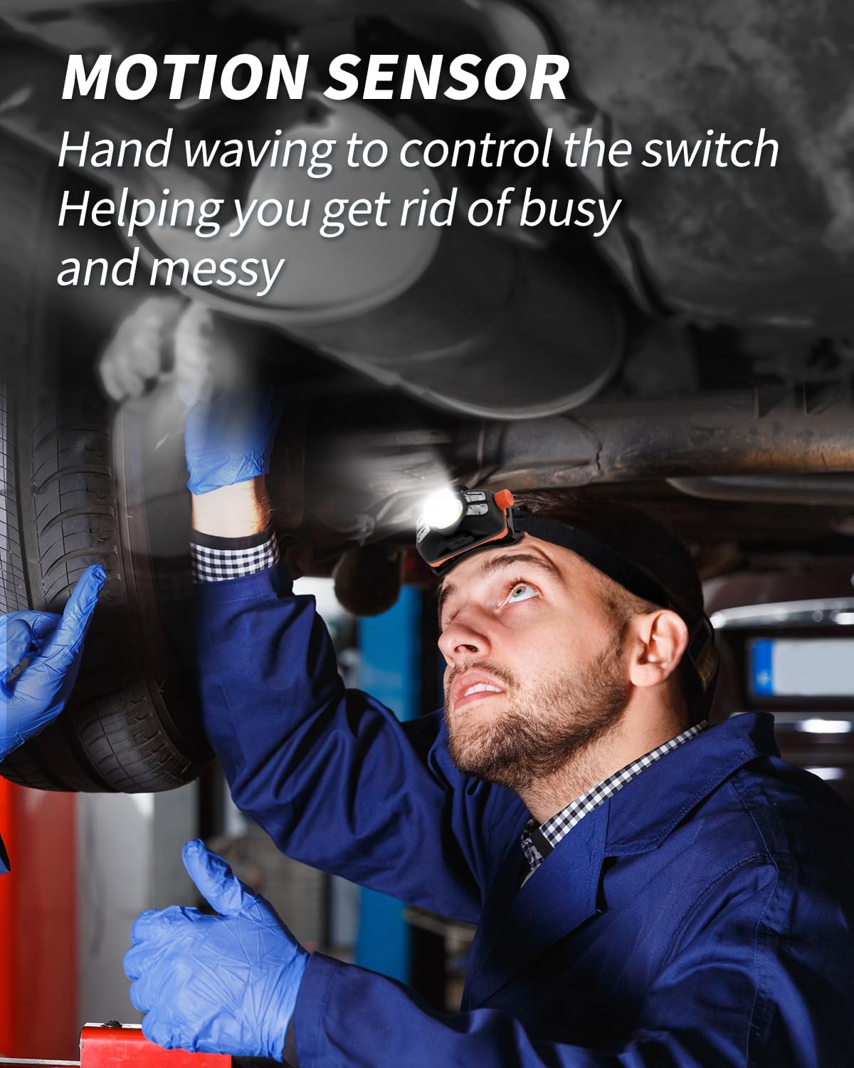 - 【Smart and Easy to Use】Equipped with an intuitive motion sensor, this headlamp lets you control the on/off switch simply by waving your hand. No need to fumble around for buttons or switches!